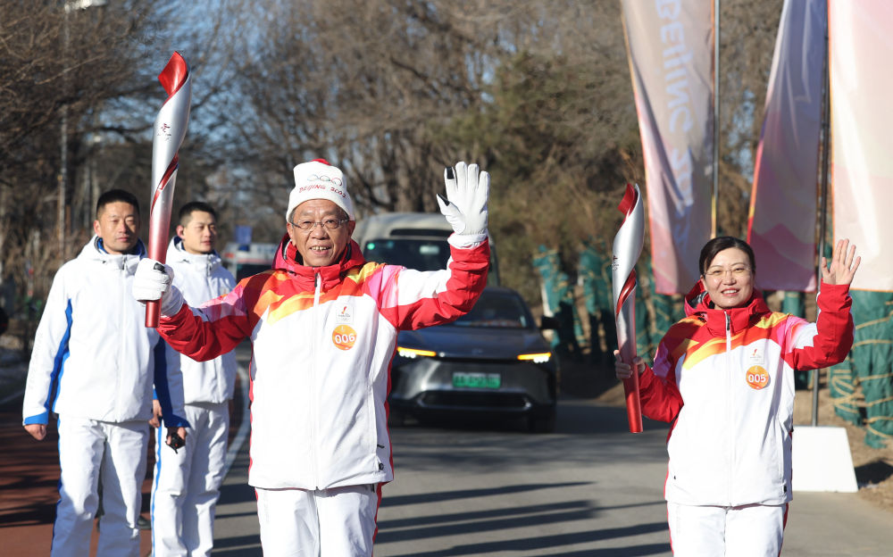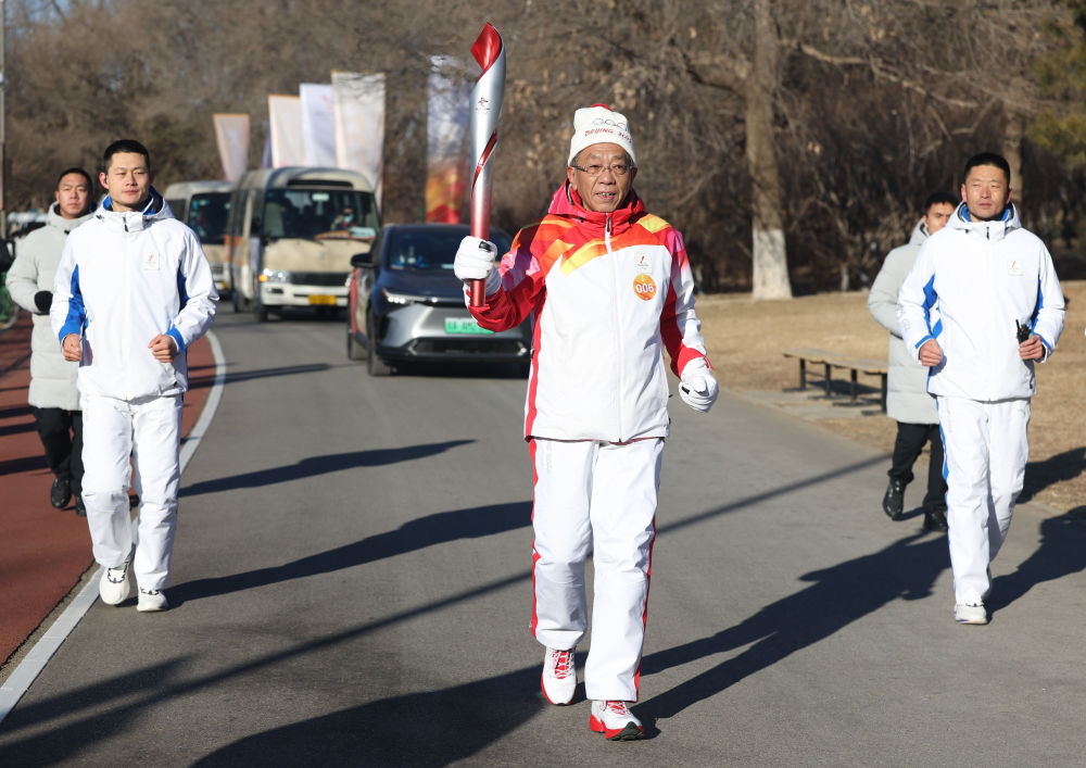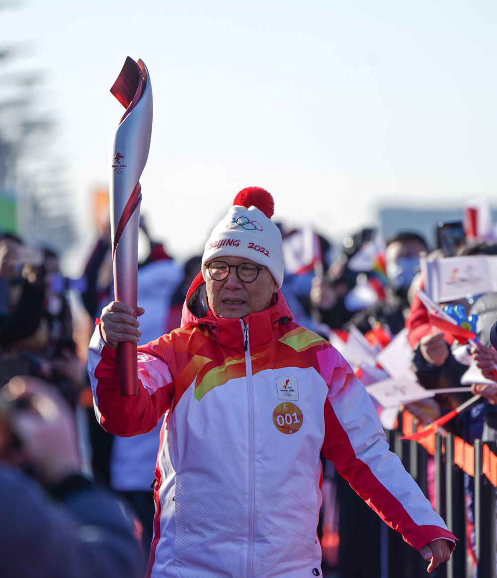 ↑2月2日,第一棒火炬手罗致焕在火炬传递中。新华社记者 陈晔华 摄