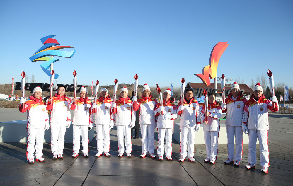 ↑2月2日,部分火炬传递参与者在启动仪式前合影。新华社记者 贾浩成 摄