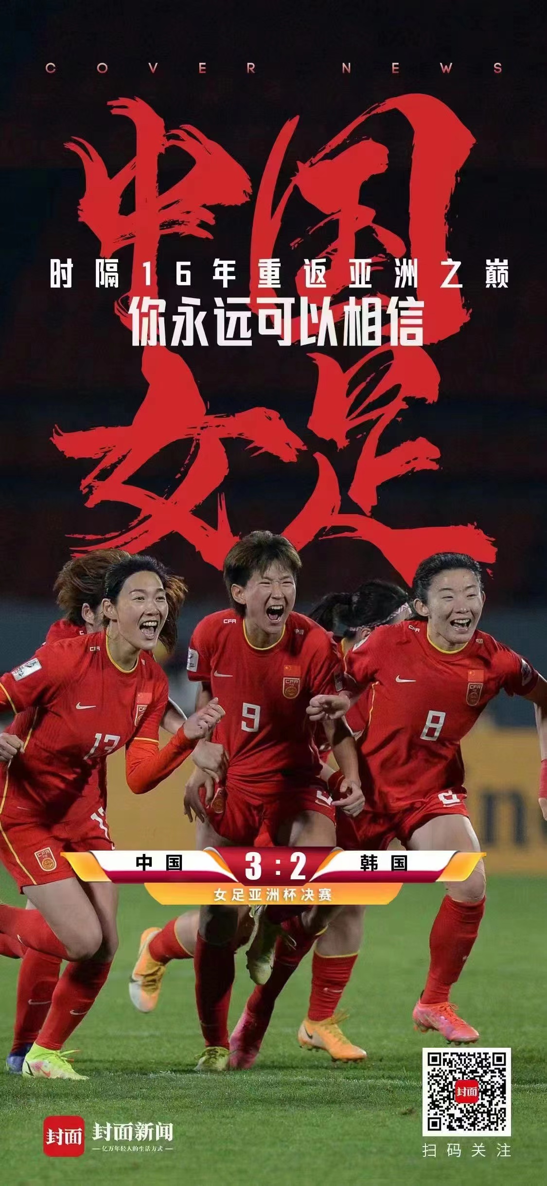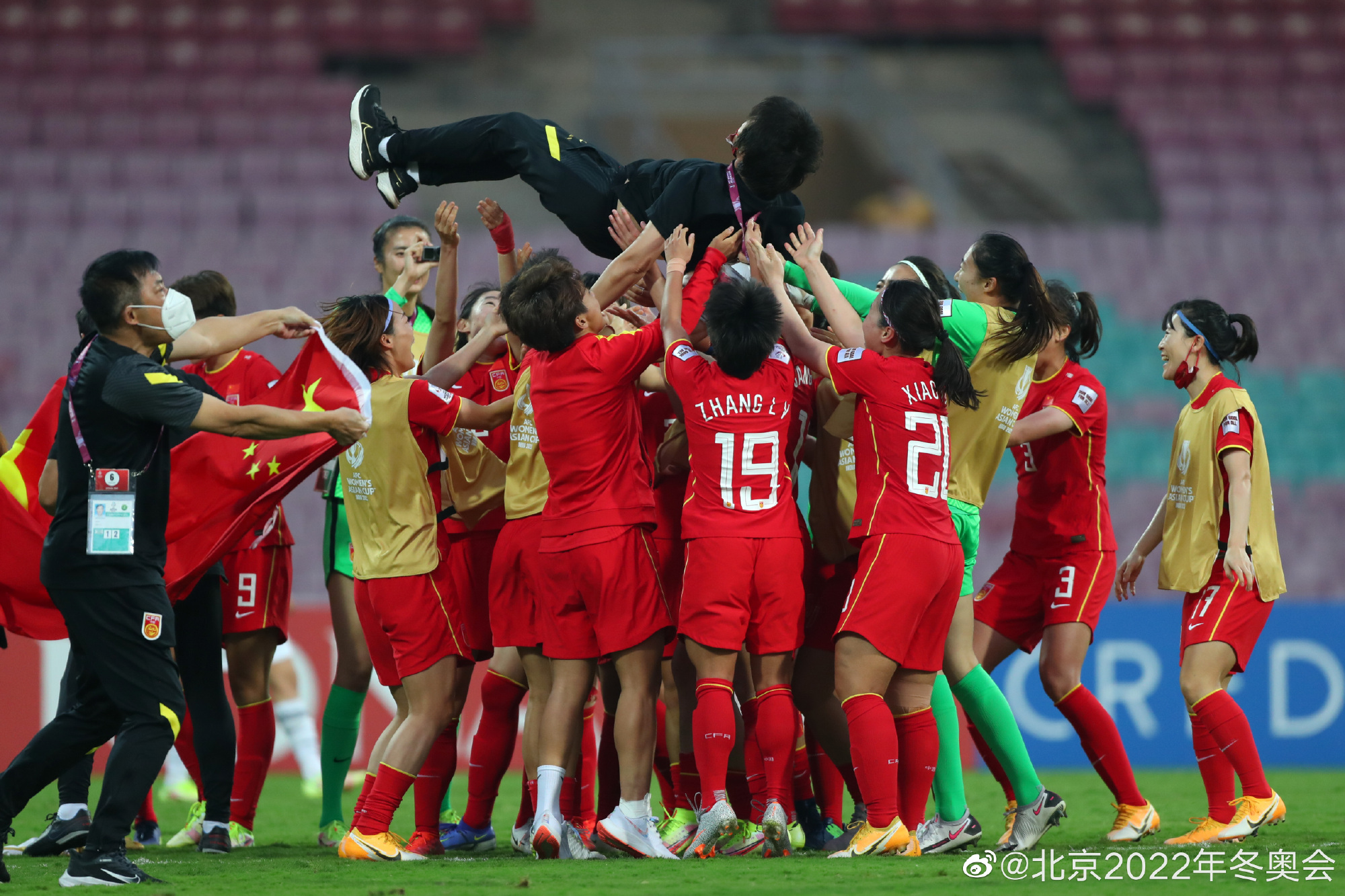 直到决赛结束,水庆霞终于振臂欢呼,也没有再拒绝姑娘们的抛举庆祝。从这一刻开始,中国女足,重新起航。
