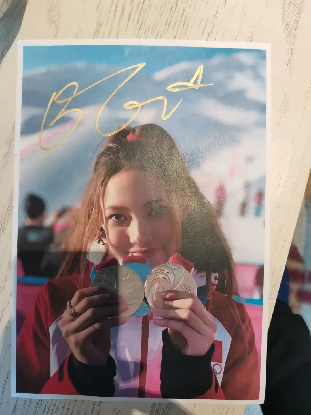 谷爱凌送给工作人员的签名照