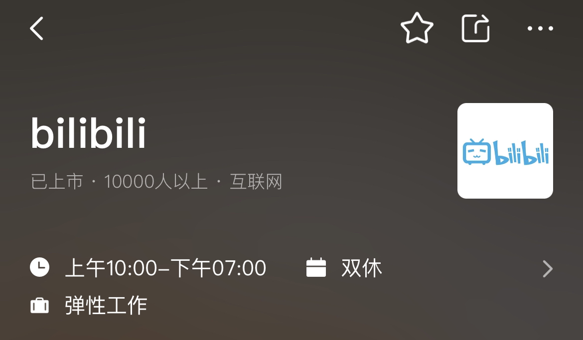 B站在某招聘app上的信息
