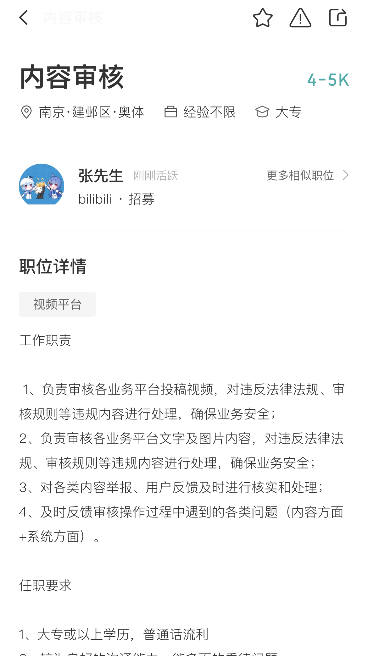 B站现正在招聘中的内容审核岗