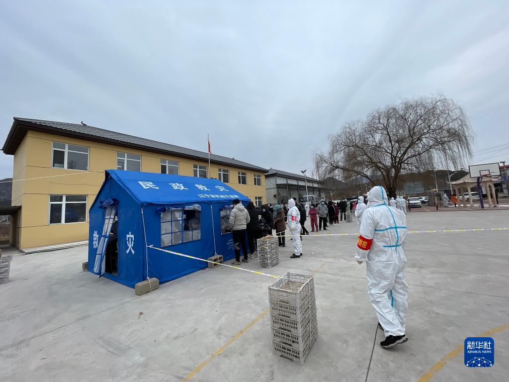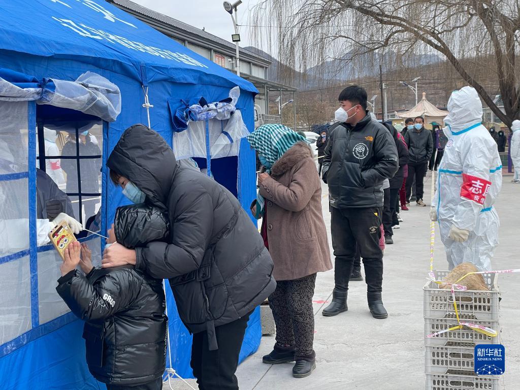 2月12日,在绥中县秋子沟乡腰岭子村,居民参加核酸检测采样。新华社记者 李昂 摄