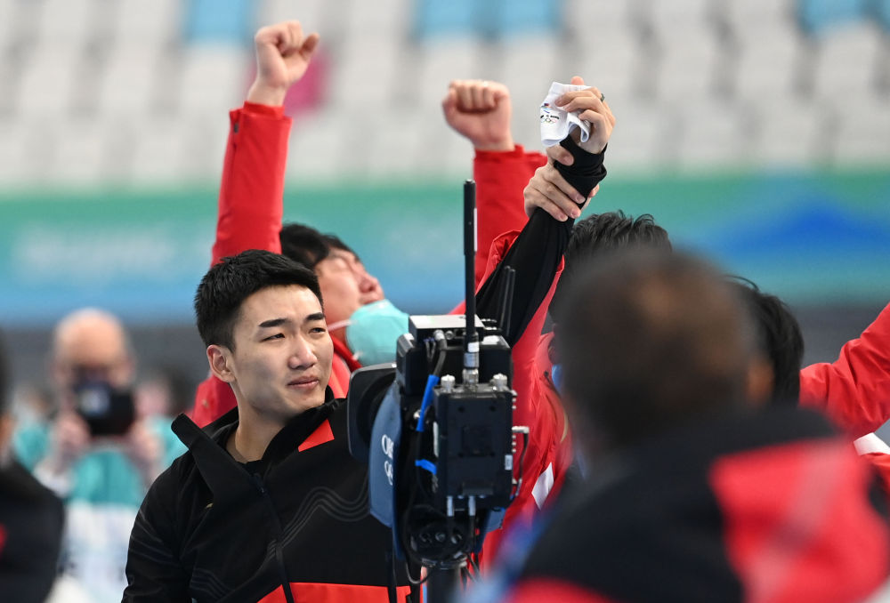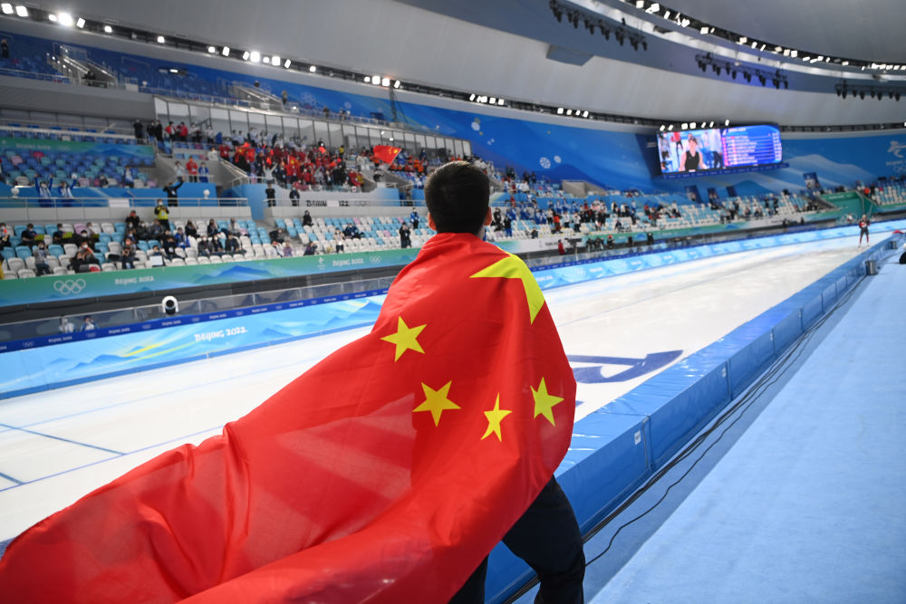 运动员和教练员多年拼搏奋斗的结果、梦想实现时刻的激情迸发,是摄影记者奋力捕捉和记录的瞬间。高亭宇取得了历史性的成绩,让“冰丝带”上飘扬起五星红旗,这是多么具有历史意义的时刻呀!