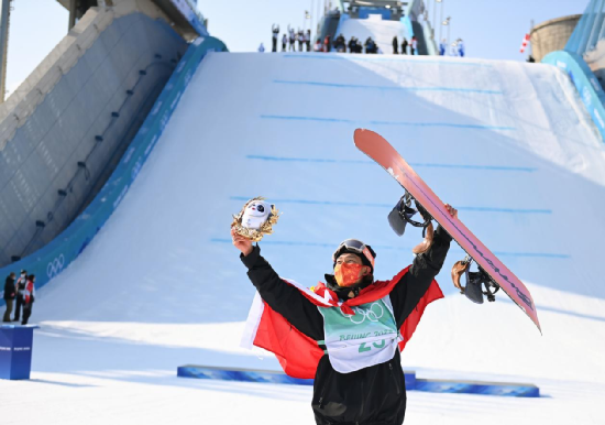 2月15日,中国选手苏翊鸣在夺冠后庆祝。新华社记者 黄宗治 摄