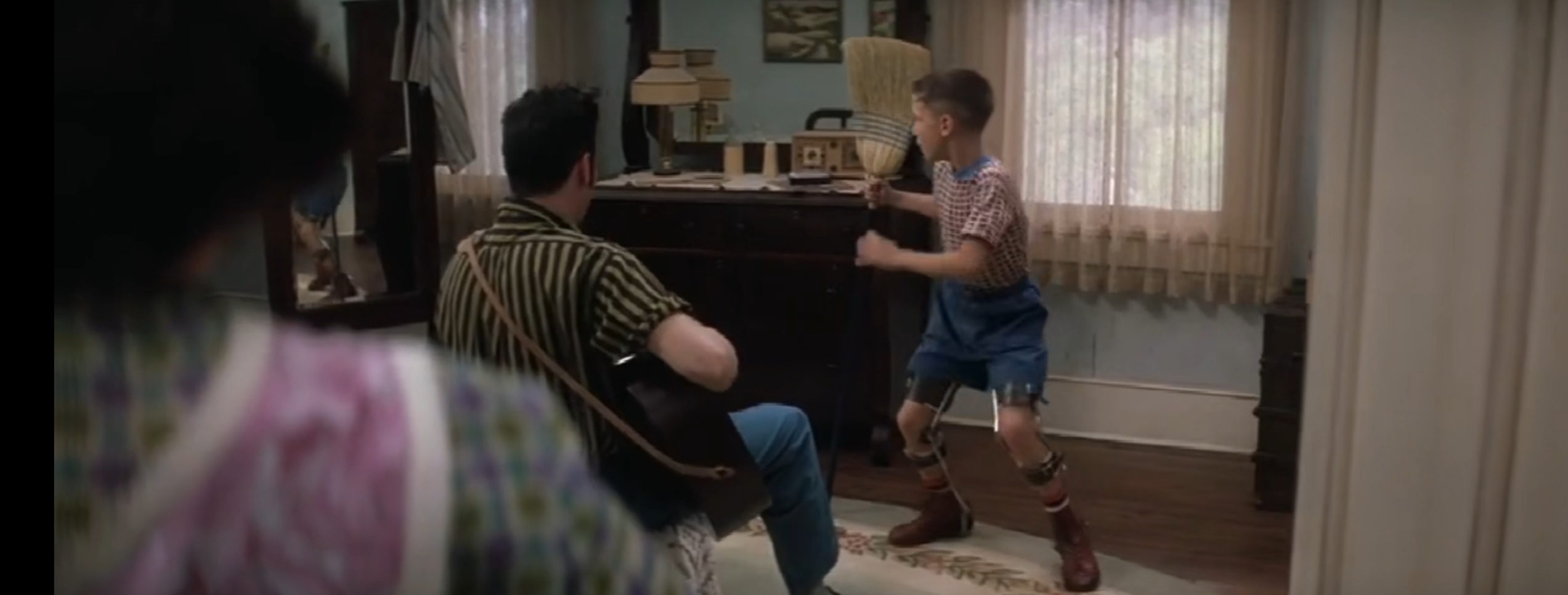 以前“猫王”的形象也出现在其它影片里,比如早年的《阿甘正传》,曾经默默无闻的“猫王”偶遇童年阿甘,因为阿甘双腿有轻微残疾,其腿上的矫正器让他在听“猫王”弹吉他跳舞时出现了一种另类独特的舞步。年轻的普雷斯利由此灵感大发,创造出风靡50年代乐坛的摇摆舞。