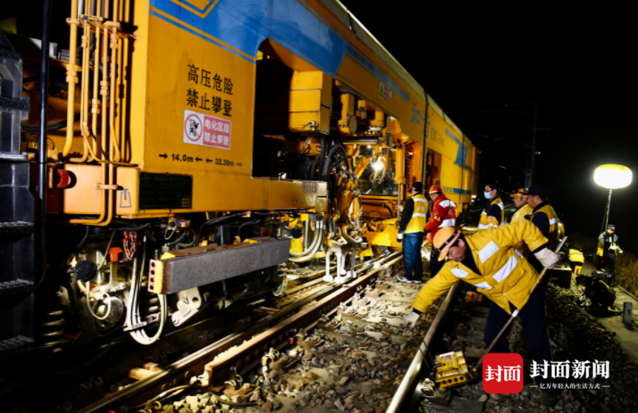 2月17日凌晨,兰渝铁路集中修道岔设备整治大会战施工现场
