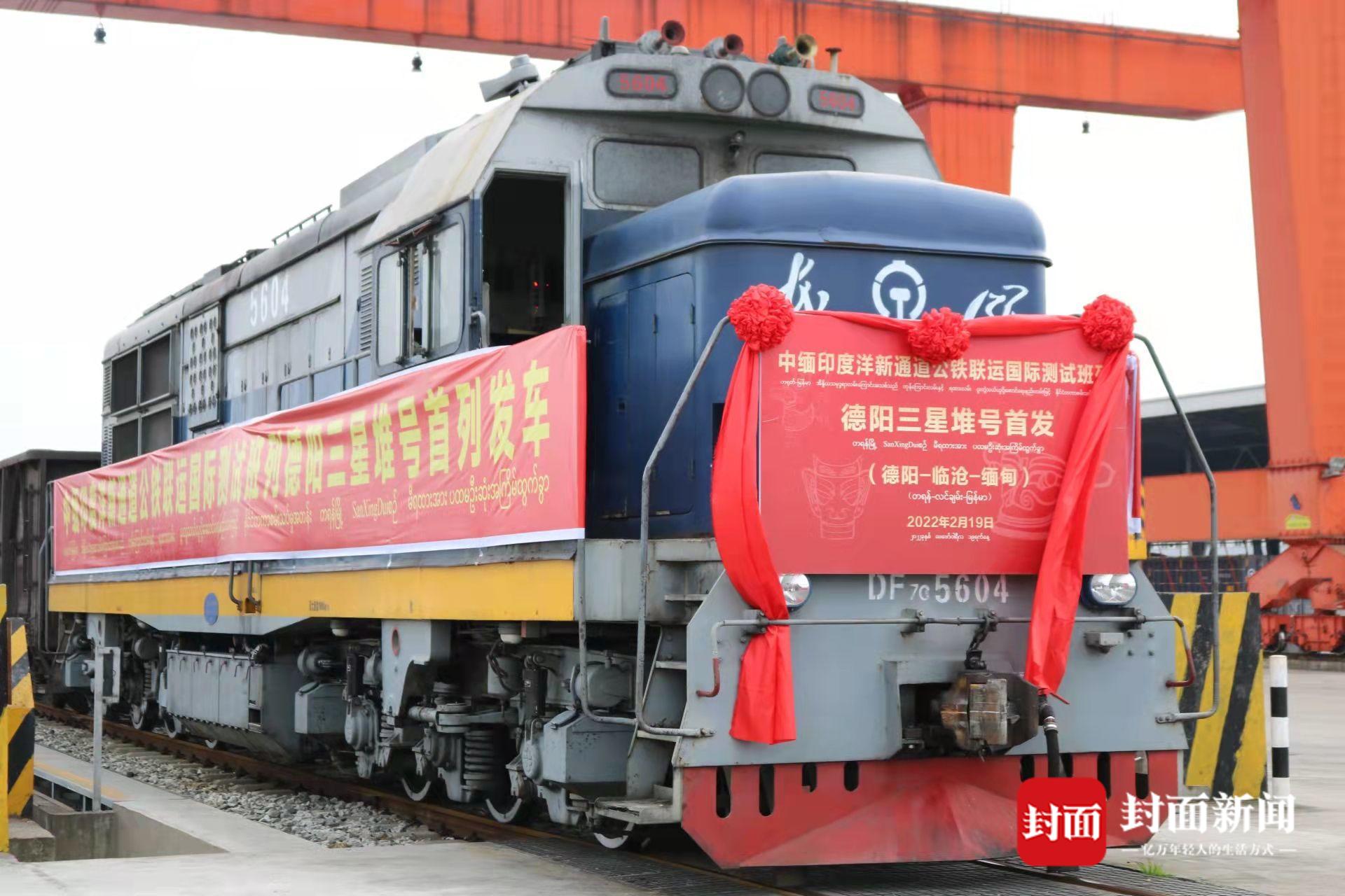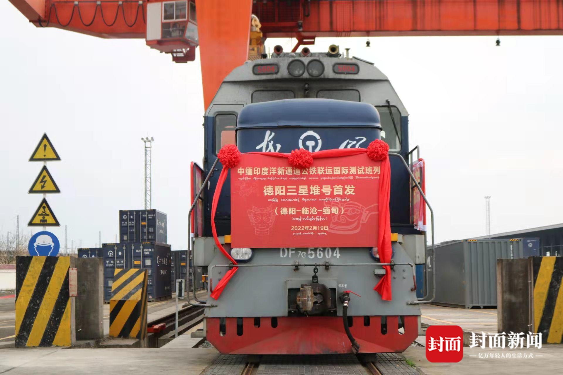 2022年2月19日下午,首列中缅印度洋新通道公铁联运国际测试班列——德阳三星堆号,自德阳国际铁路物流港黄许镇站发车。装载着光伏设备的列车,将经云南临沧公铁联运至缅甸清水河口岸。这是德阳融入西部陆海新通道建设,取得的突破性创新成果。
