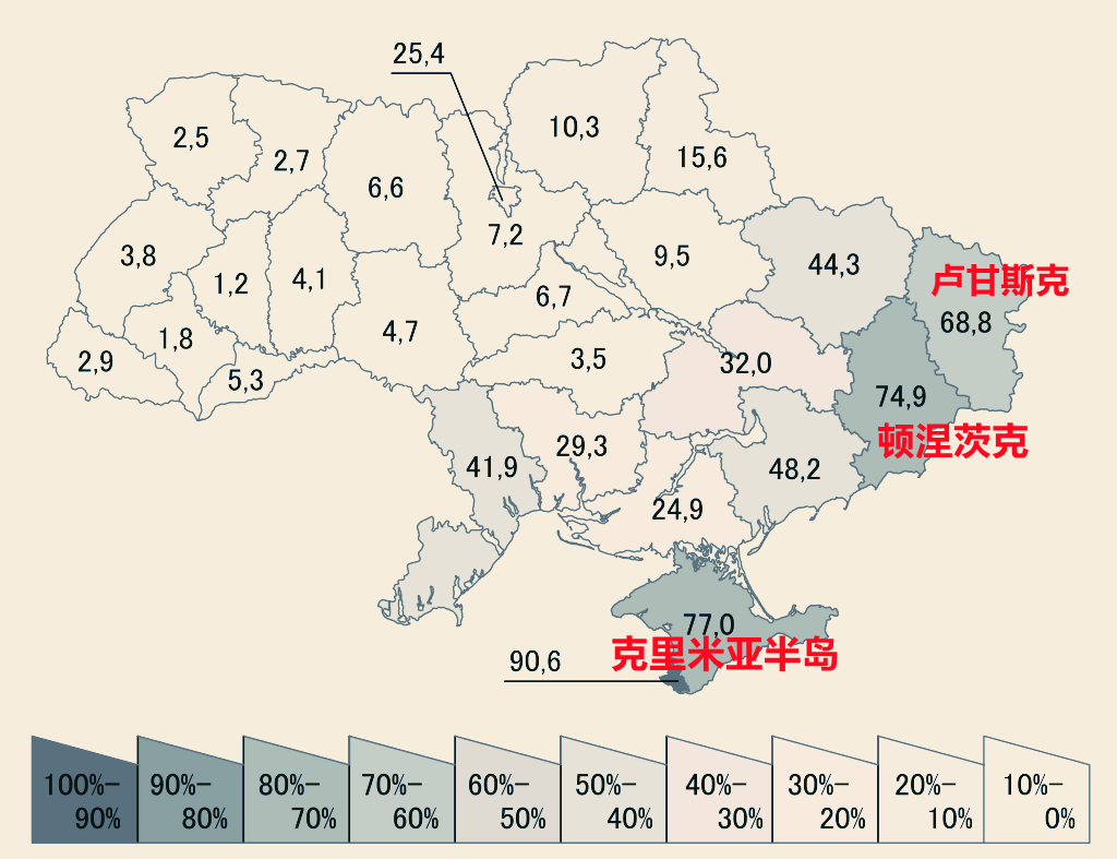 乌克兰境内2001年俄语使用情况
