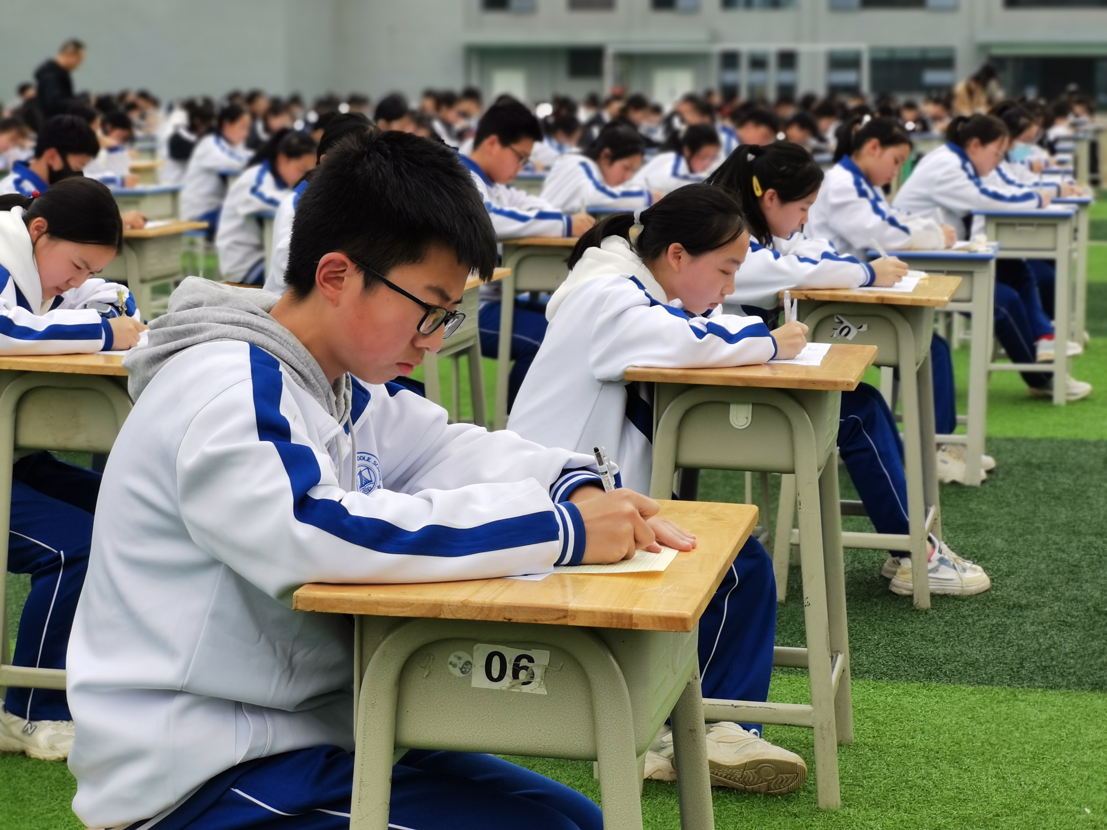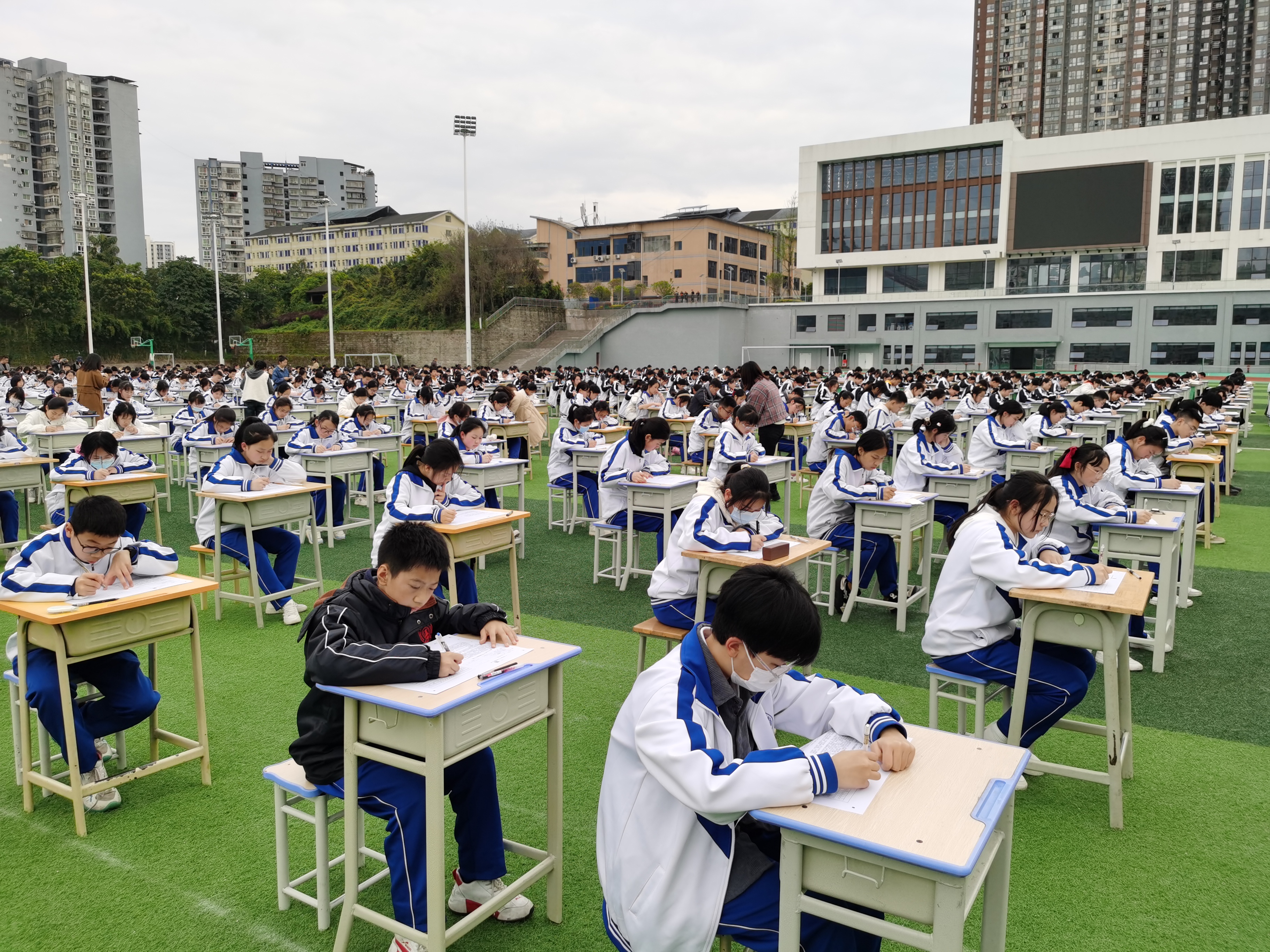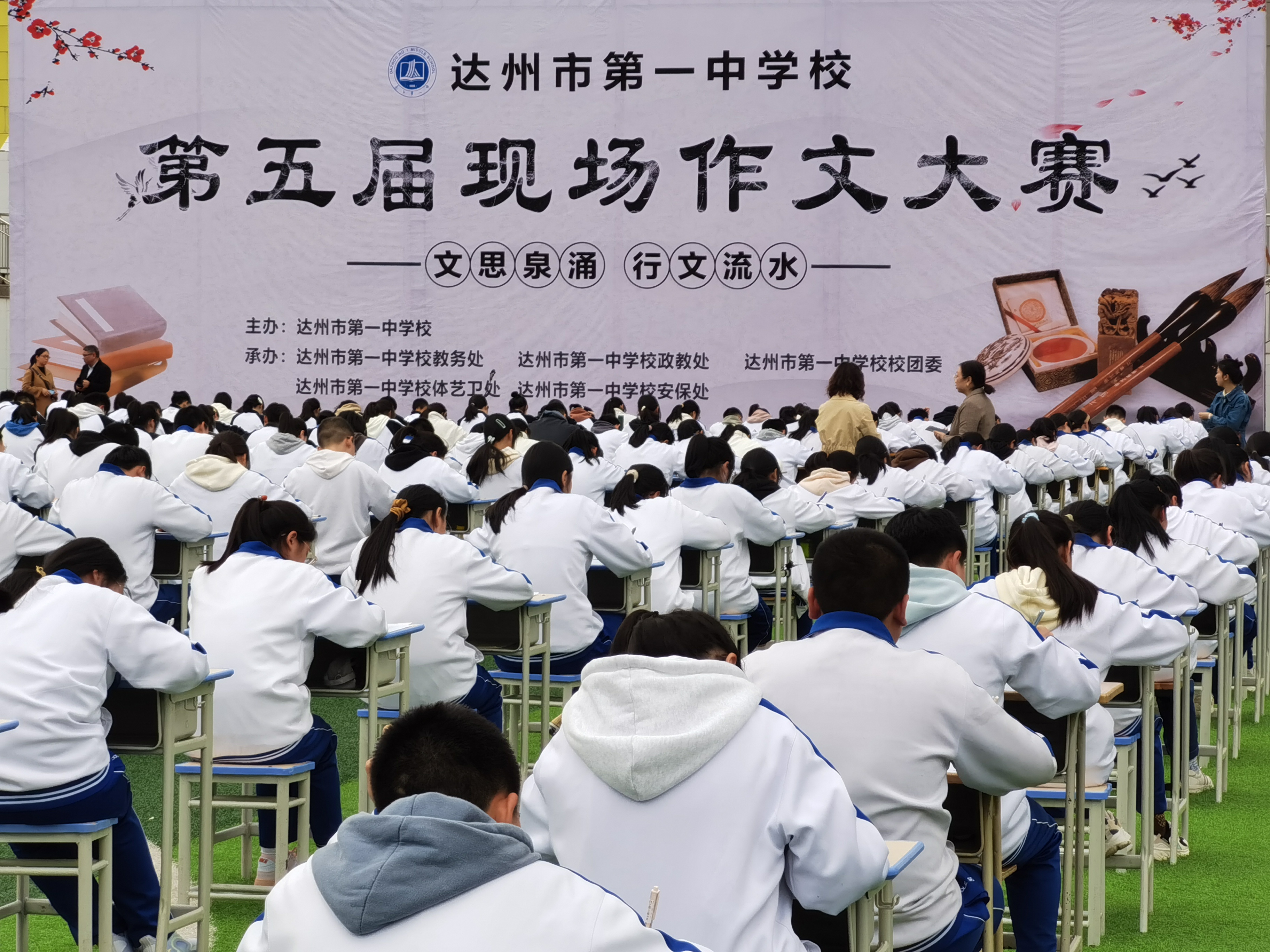 3月30日下午,春日阳光洒在四川省达州市第一中学校(以下简称“达州一中”)的校园里,暖暖的。在该校的凤凰校区,来自初一初二年级和高一高二年级的628名学生,将课桌搬到操场上整齐划一地排列,参加该校第五届现场作文大赛。与此同时,该校朝阳校区初一初二年级的380名学生,也以同样的方式,同步拉开大赛序幕。
