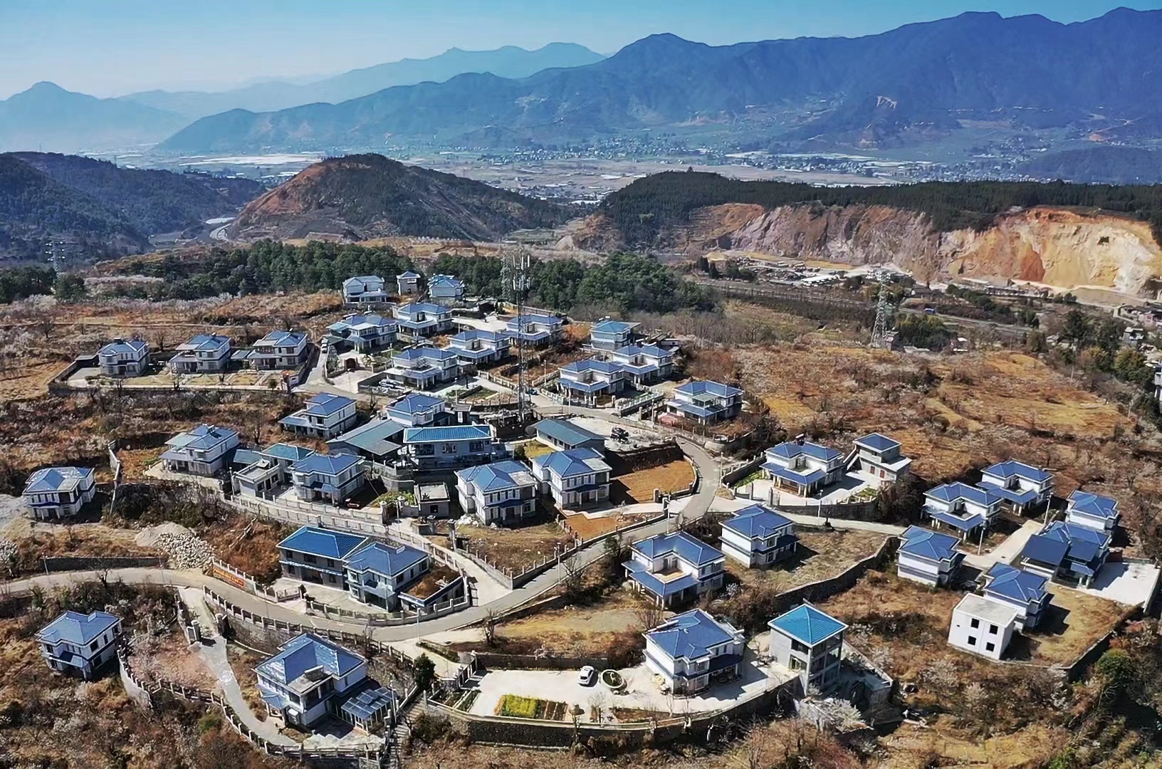 航拍桃园村的民宿群落