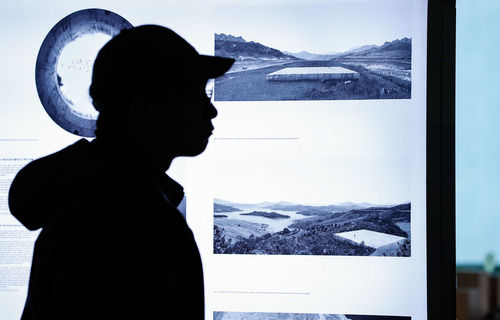 图为2019年4月2日,在韩国首尔,一名参观者在参观展览。(新华社记者王婧嫱摄)