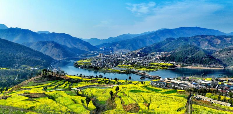 又是一年菜花黄。这两天,四川省广元市利州区三堆镇境内的白龙江畔,金黄的油菜花争相盛开,呈现出一片春意盎然的景象。
