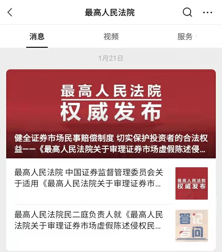 2022年1月21日 最高人民法院继续提供虚假陈述相关法律供给