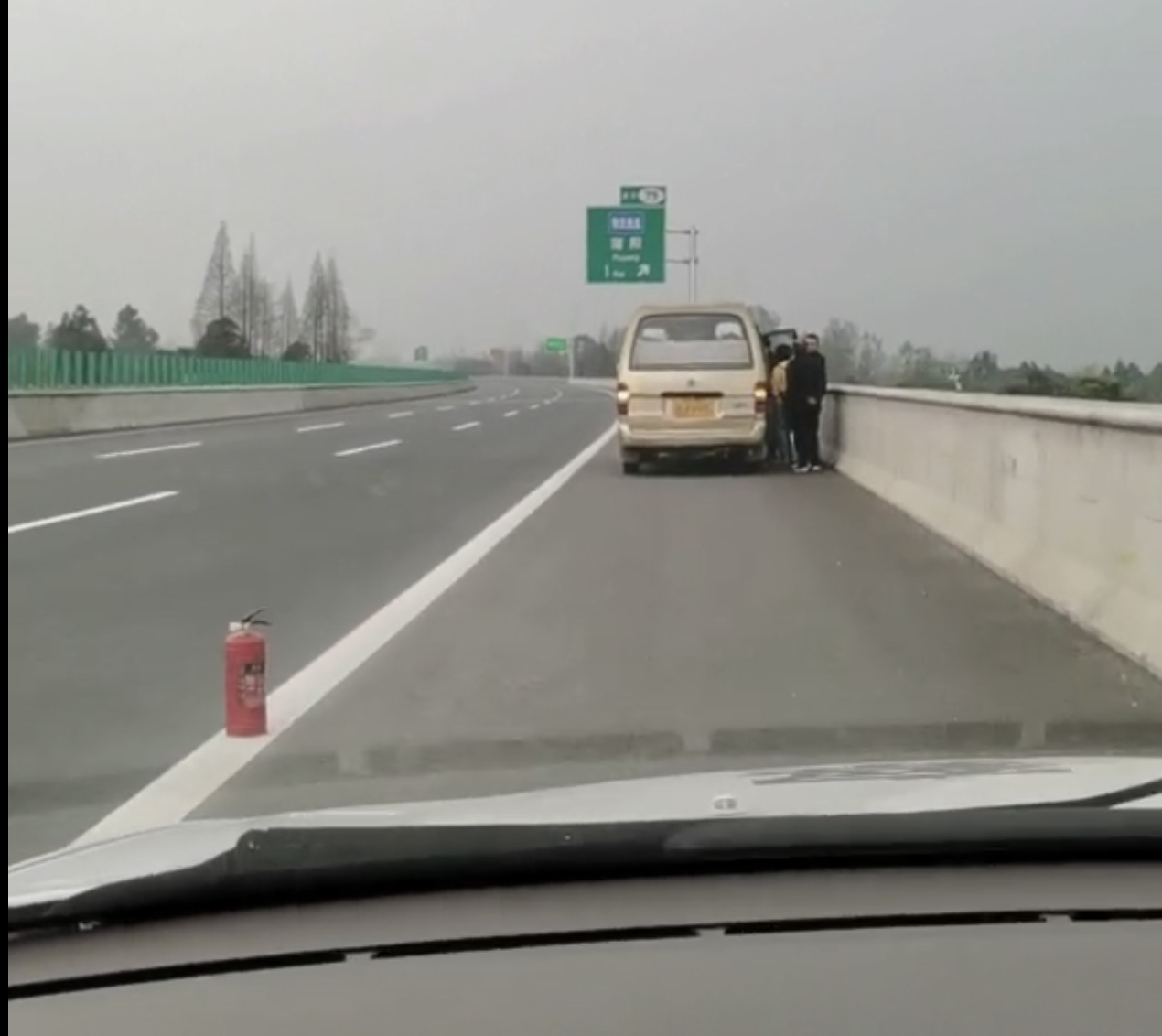 当天上午8时55分,十六大队大队长刘春麟和民警卢宇巡逻至德都高速78Km处时,发现一辆川F牌照的中巴车停在应急车道上,该车仅在车后方20米位置处摆放了三角故障牌,车前方有数十人站在车旁来回走动,驾驶员在车旁焦急的拨打电话。
