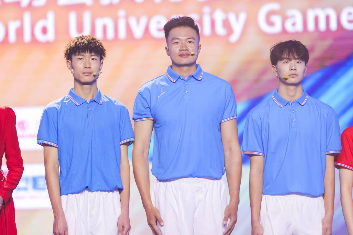 活动现场,东京奥运会冠军邹敬园,东京奥运会冠军施廷懋等嘉宾共同发布成都大运会奖牌“蓉光”。
