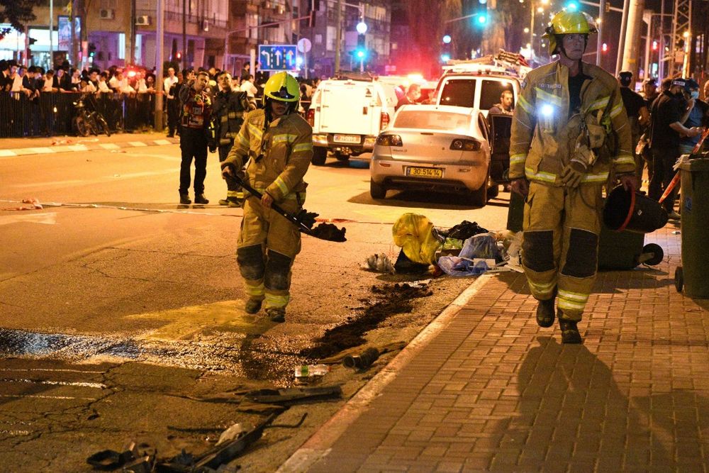 3月29日,应急人员在以色列布内布拉克的枪击事件现场工作。新华社/基尼图片社