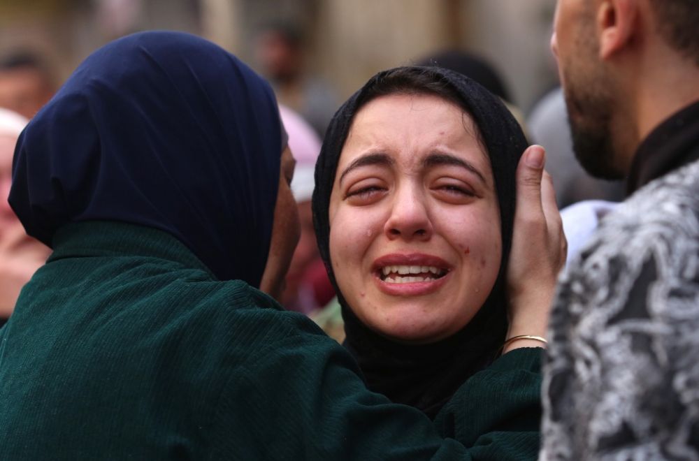 3月31日,在约旦河西岸北部城市杰宁,人们参加被以军打死的巴勒斯坦人的葬礼。新华社发(尼达勒摄)