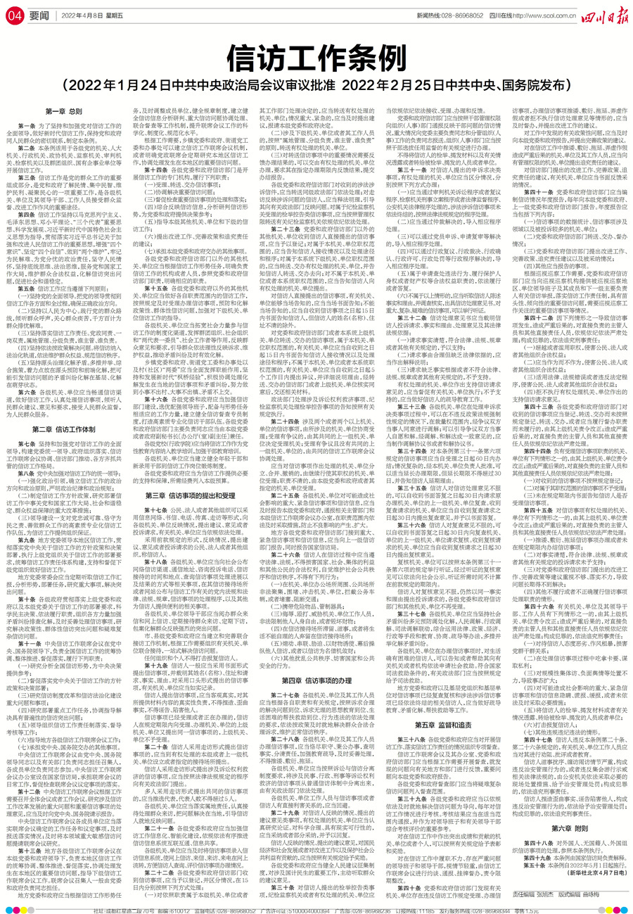 ◎中共中央、国务院印发《信访工作条例》
