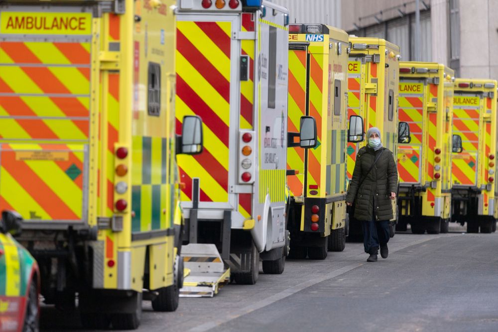 这是1月28日在英国伦敦拍摄的一家医院外停放的救护车。新华社发(雷伊·唐摄)