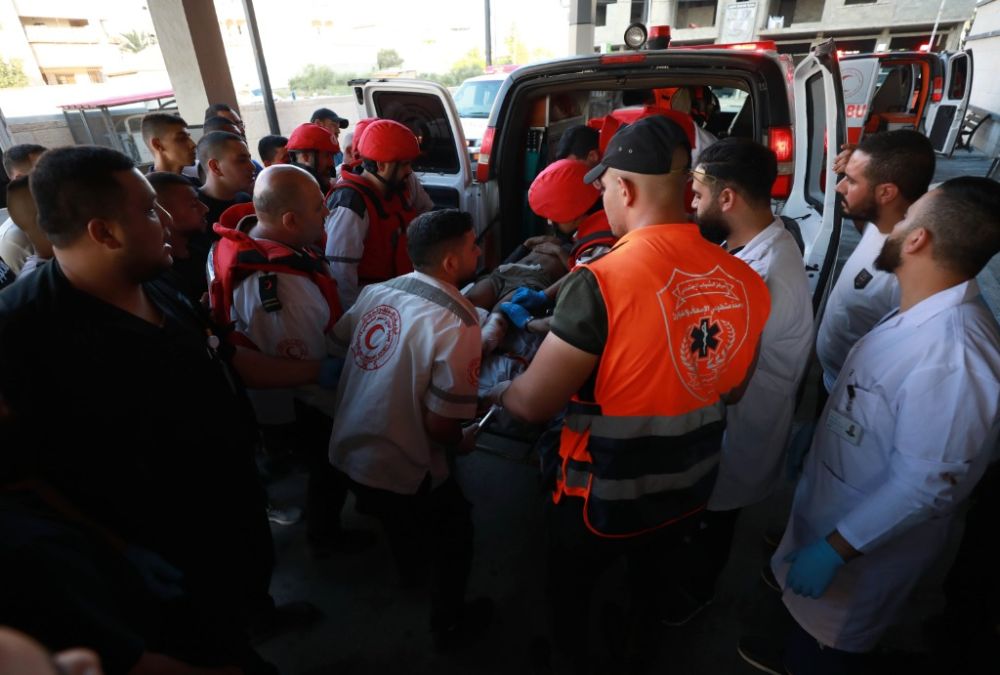 7月3日,在约旦河西岸北部杰宁地区,人们将伤者抬上救护车。新华社发(艾曼·诺巴尼摄)