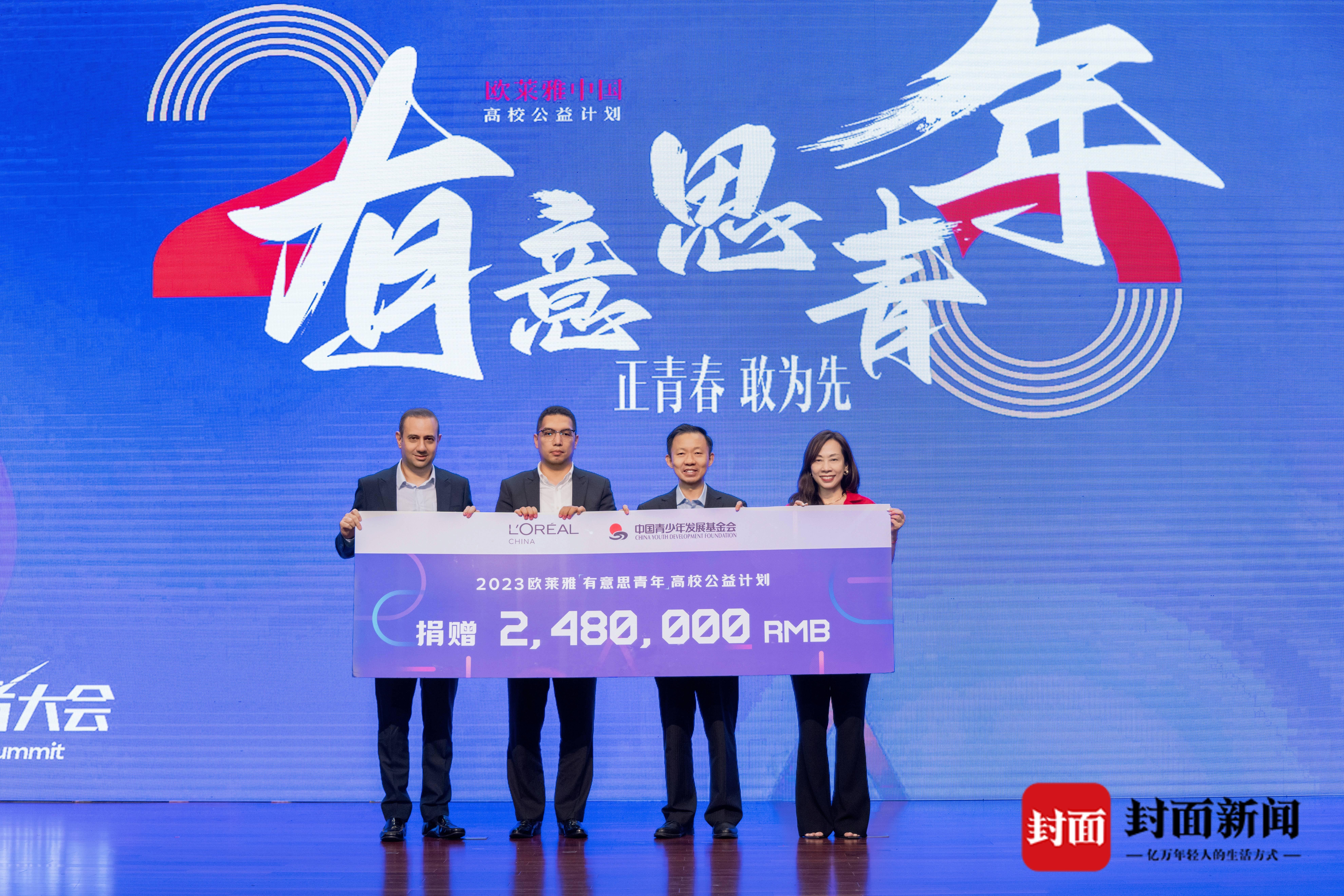 今年,“有意思青年”的公益能量依旧亮眼。在为期一个月的活动中,来自全国18所高校的学生通过线上与线下相结合的义卖形式,共筹集到248万元公益善款。在本次颁奖仪式上,欧莱雅中国将该笔善款捐赠给中国青少年发展基金会,并由其捐赠给参赛高校,用于困难学生资助、创新创业及海外游学等学生赋能相关活动。此外,“有意思青年”还评选出2023年度表现优异的学生团队及个人,并在现场进行了最佳团队奖的表彰,开启下一个“正青春,敢为先”的20年。