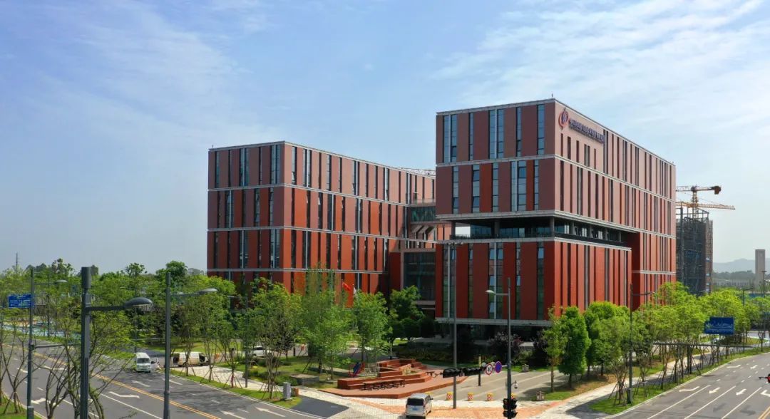 走在成都分院园区内,每一处都散发着浓厚的科研气息。远眺可看到一栋栋通体渐变橙红、充满现代感的建筑坐落在道路两侧,近看可看到每个十字路口的斑马线上面印着的DNA双螺旋、化学分子式、二进制代码。