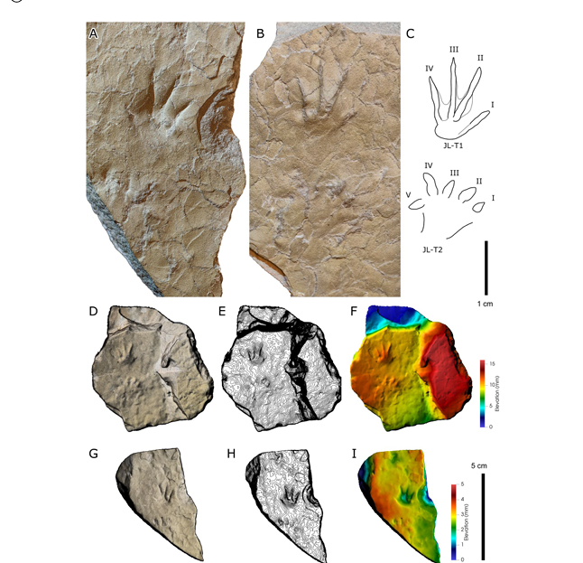 研究人员在论文中写道,这是亚洲范围内首次在侏罗纪地层中记录发现并科学描述的两栖动物足迹化石。“我们查询了目前已经发表的两栖类遗迹学论文,确实亚洲没有记录过侏罗纪地层的。论文投稿后有两位匿名审稿人做了评议。”邢立达告诉封面新闻记者。作为国家古生物专家库专家,江山也表示,此前,尚未从已经发表的论文、文献中发现亚洲发现过侏罗纪中期两栖动物足迹化石。