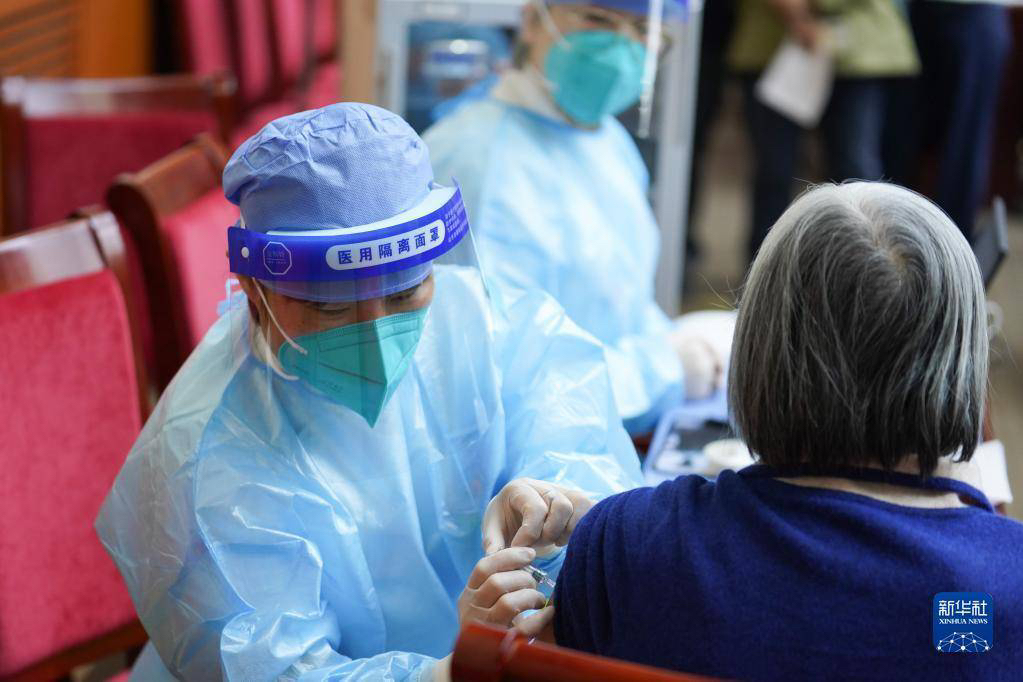 医护人员为老年人接种新冠疫苗。新华社记者 鞠焕宗 摄