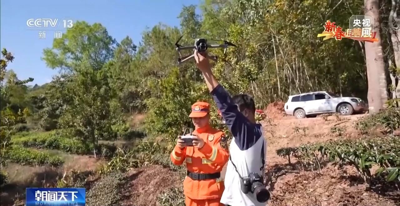 听到招呼,同行的消防员郭元丰赶紧升起无人机,发现象群正在玉米地里觅食。