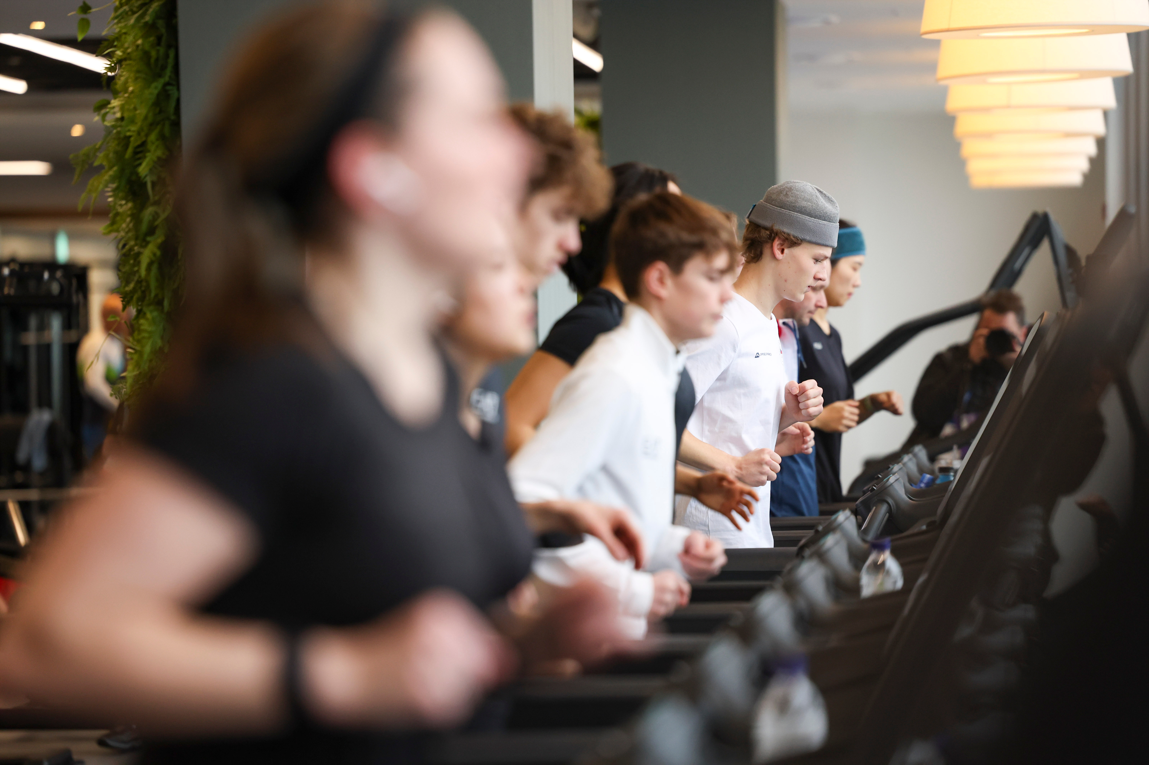 1月18日,运动员在冬青奥村多功能健身中心跑步。新华社记者 胡虎虎 摄