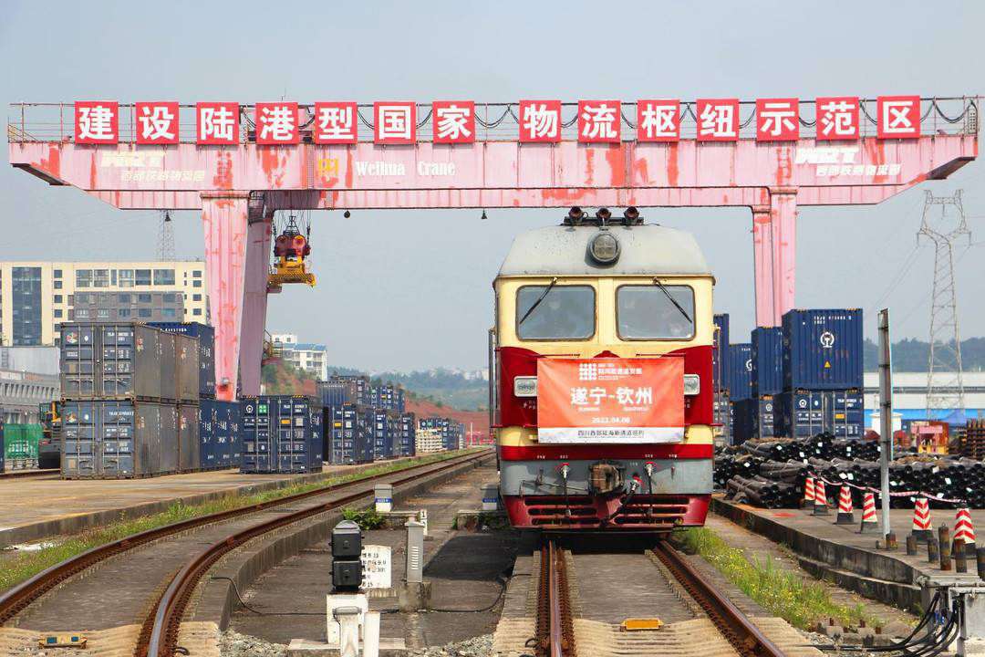 遂宁高新区西部铁路物流园开往东南亚国家的“四川西部陆海新通道班列”