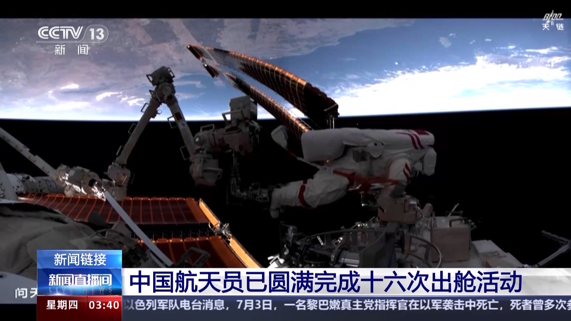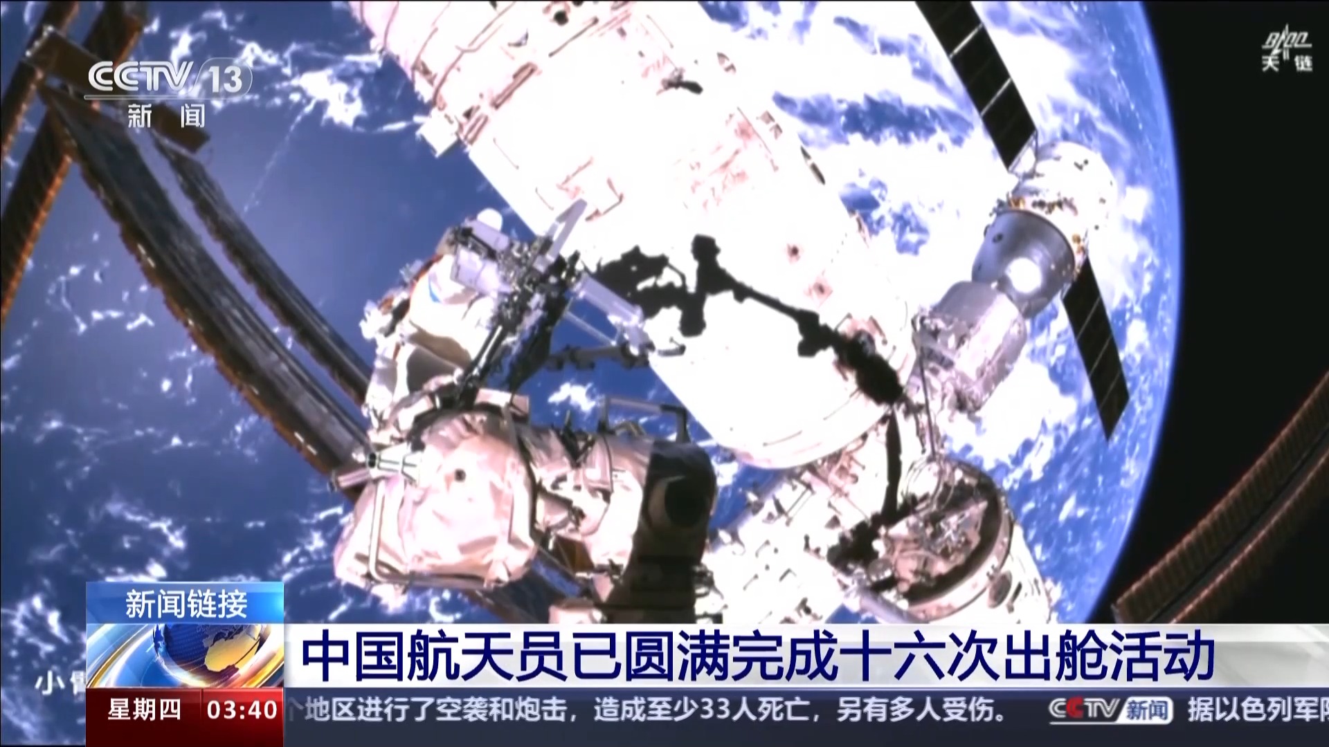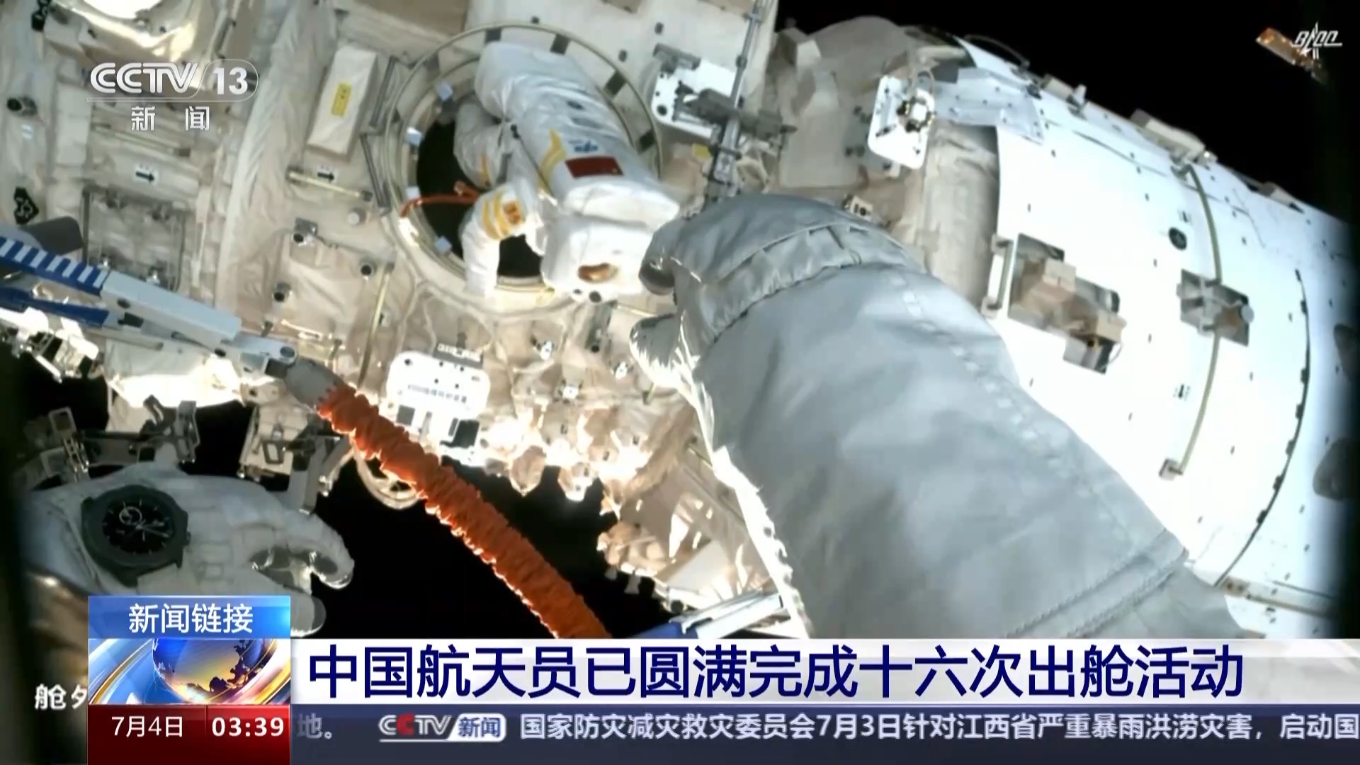 完成了舱外活动相关设备组装、全景相机抬升等任务,首次检验了我国新一代舱外航天服的功能性能。