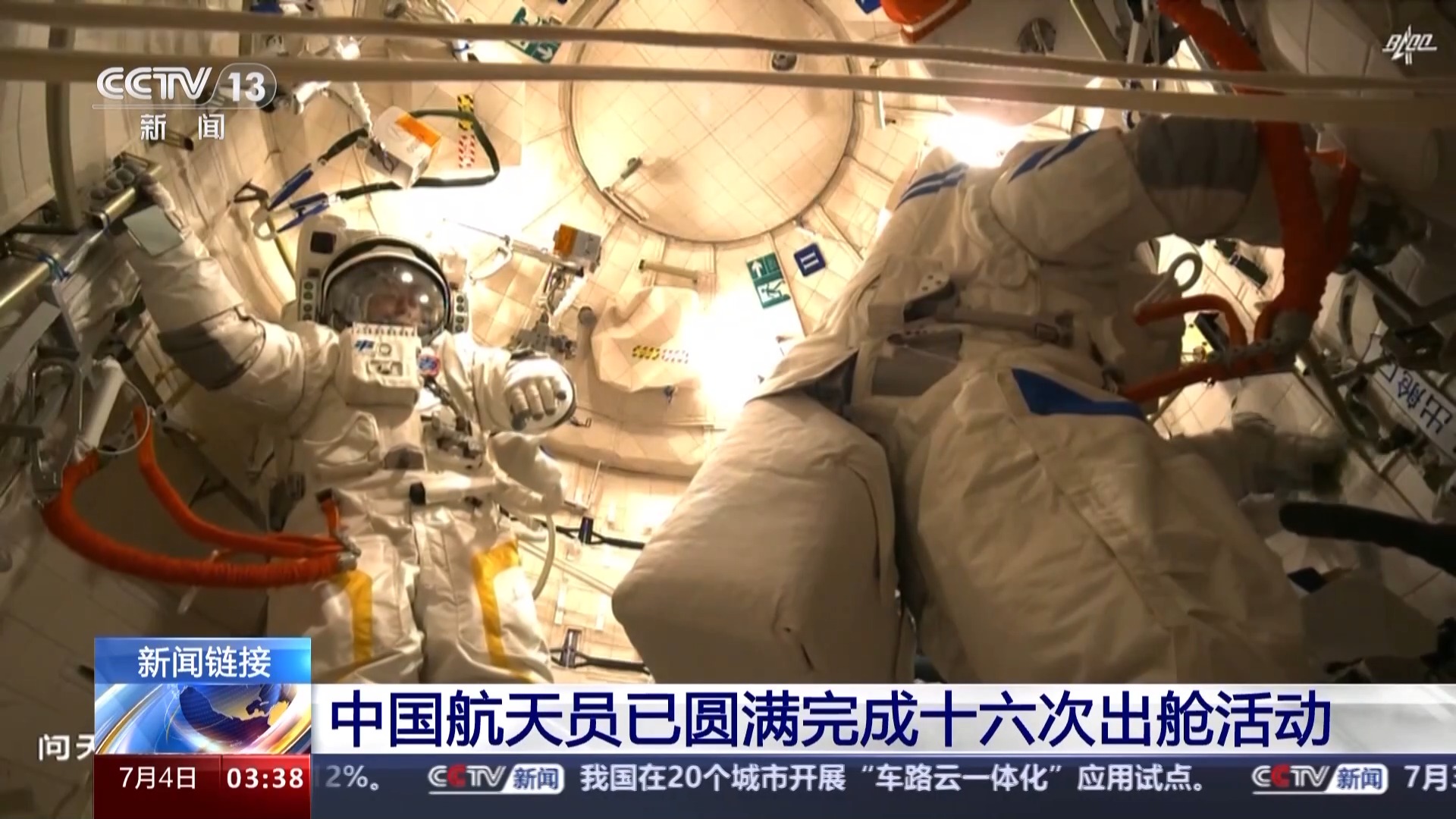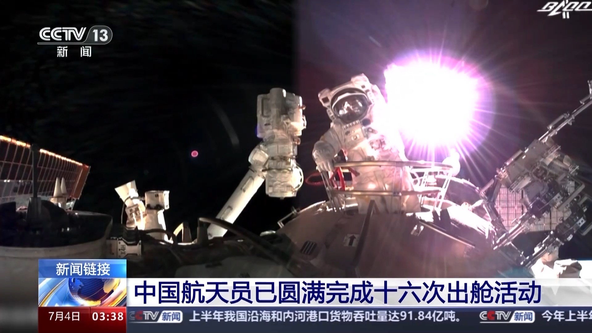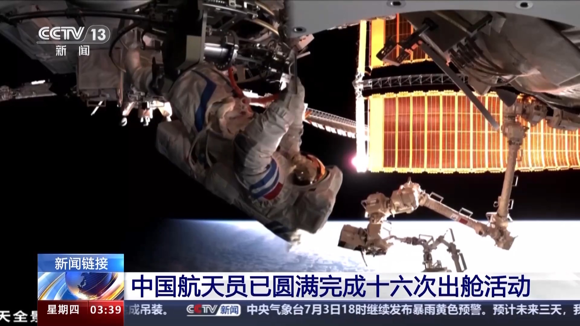 完成了舱外活动相关设备组装、全景相机抬升等任务,首次检验了我国新一代舱外航天服的功能性能。