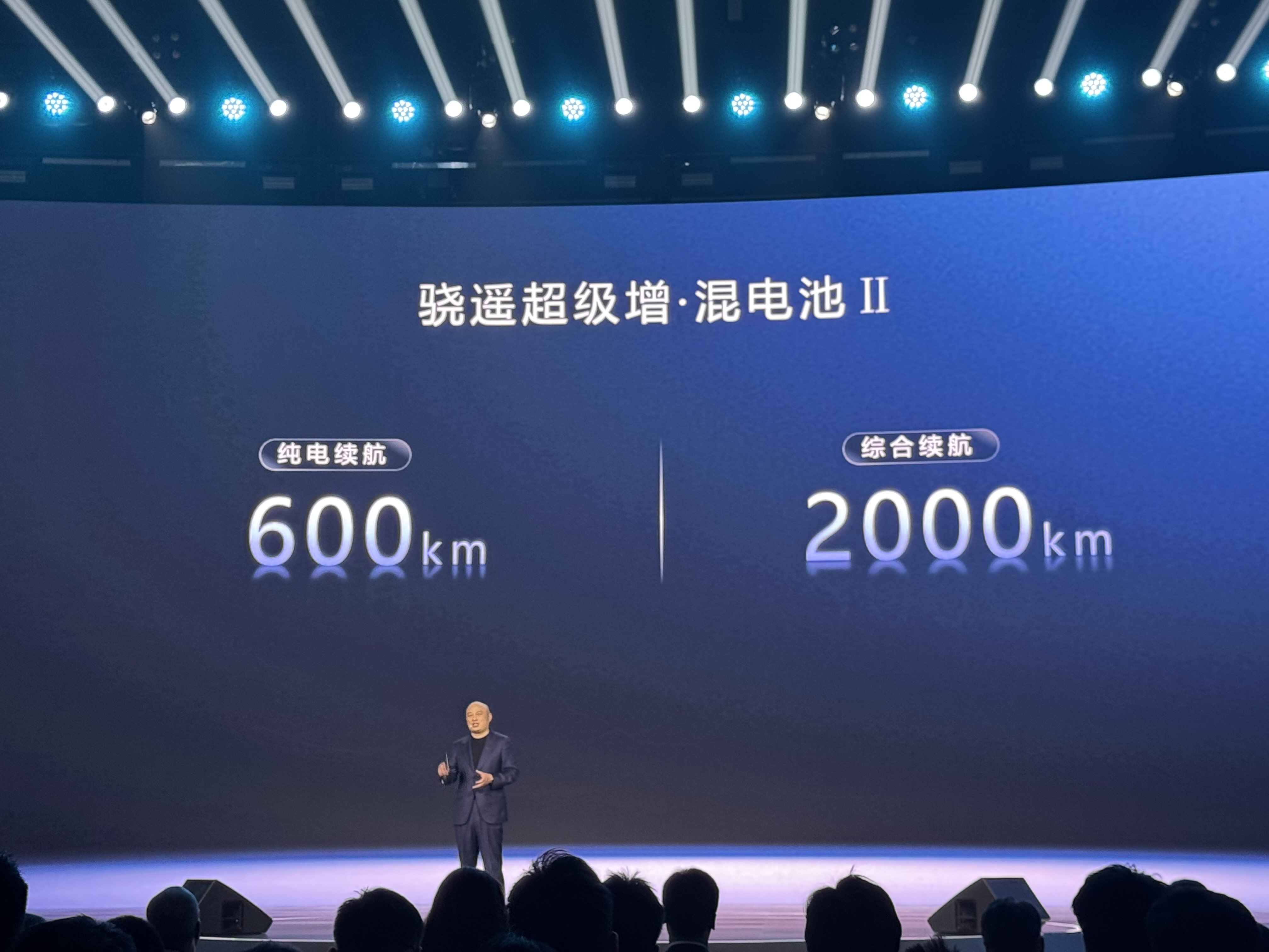 此外,第三代麒麟电池以280Wh/kg实现千公里续航,电池包仅625kg,比同级减重255kg;第二代骁遥增混电池将纯电续航拉至600公里,亏电功率仍达1.2兆瓦。