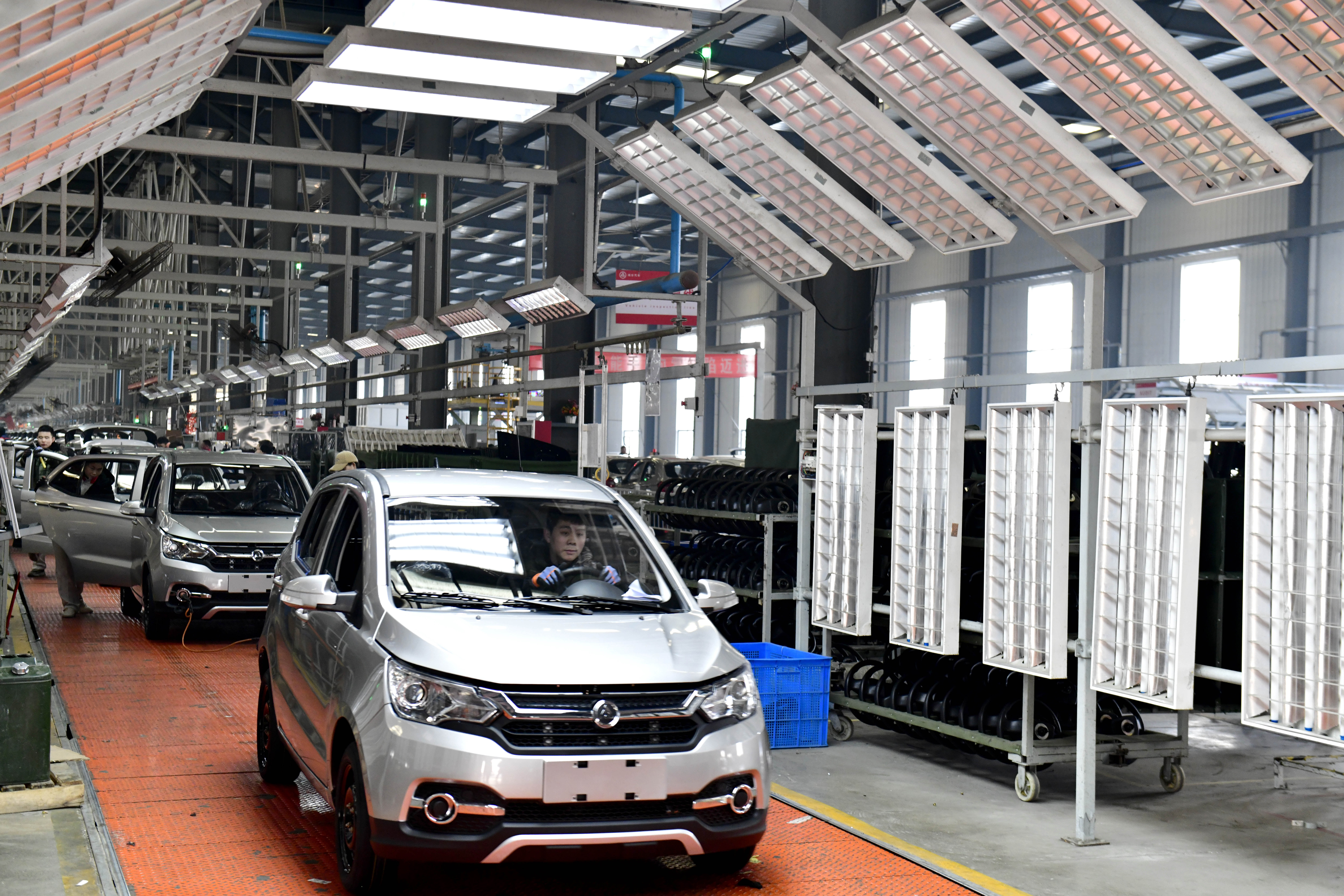1月12日,在日照鸿日新能源汽车有限公司,工作人员在整车生产线上忙碌。新华社记者 郭绪雷 摄