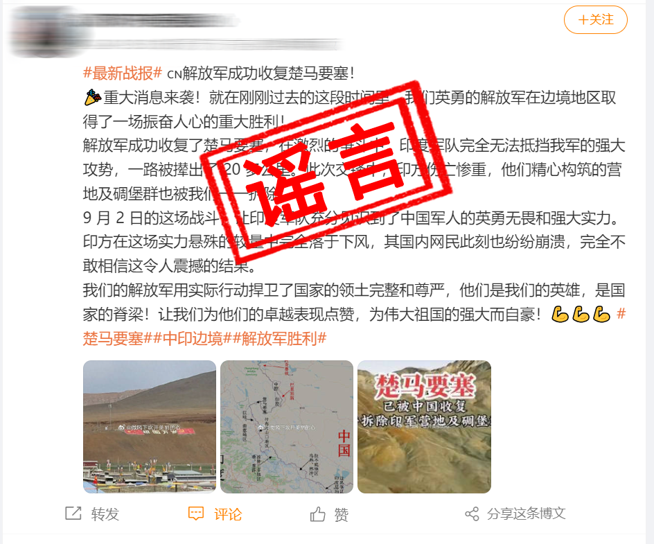 西部战区:网络不是法外之地,制作传播涉军谣言当止 “西部战区”微信公号 2024-09-06 21:04 169868 评论 17 fmcf8042 2024-09-07 发表于四川 净化网络空间。 jinjin 2024-09-07 发表于四川 维护 叶子 2024-09-06 发表于四川 关注 查看更多