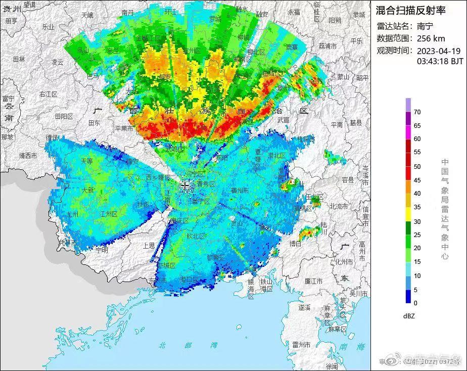广西南宁市气象台4月19日4时50分发布雷电橙色预警信号:目前雷雨云团正逐渐靠近南宁市兴宁区、西乡塘区,预计未来3小时,南宁城区大部自北向南将出现雷电,局地伴有短时强降水、大风,请注意防范。