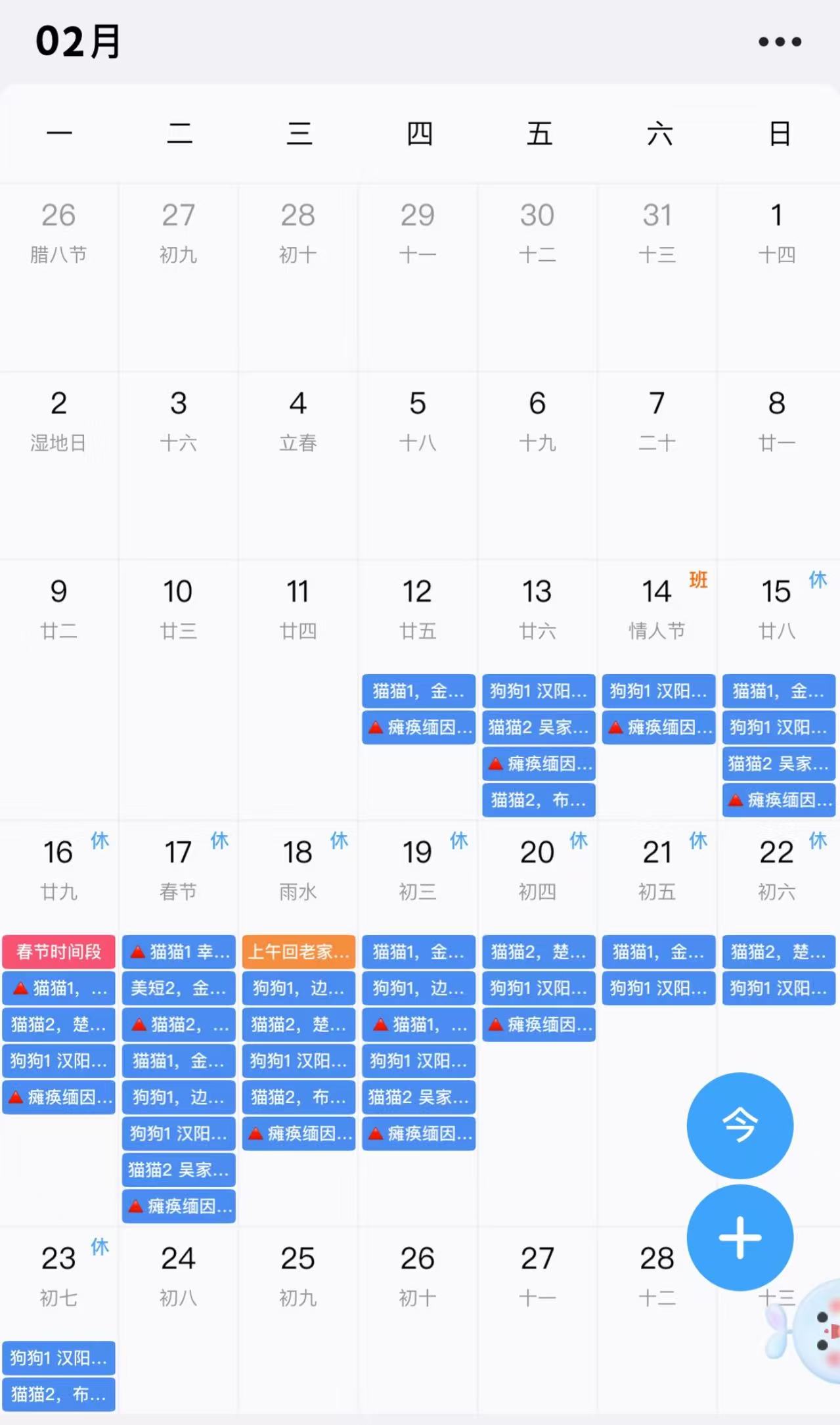 “千千有点甜”的春节上门喂养预约表。图据受访者