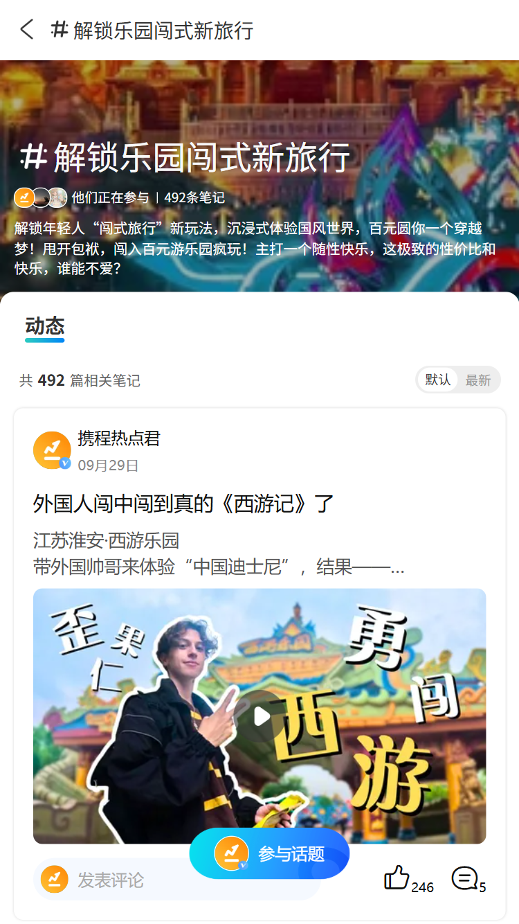 此外,内容生产与消费在后黄金周时代也将持续发力,尤其是国庆后1-2周是笔记视频短动态的爆发增长期,携程也同步推出流量扶持策略,保证大家国庆的旅行喜怒哀乐能被更多人看到,优质内容还有机会“上墙”携程社媒官号获得真金白金的奖励或者流量扶持。