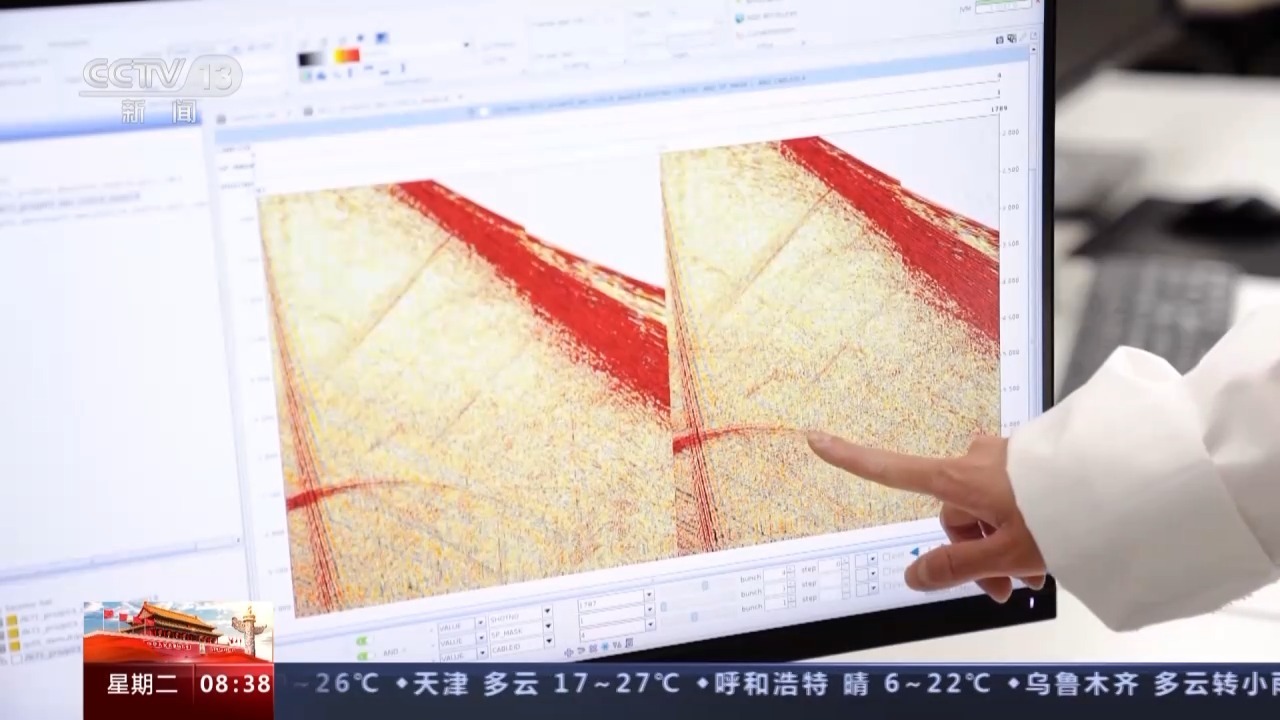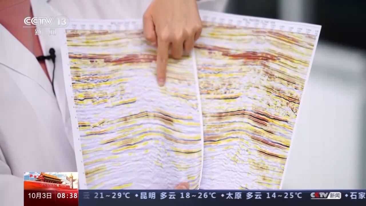 总台央视记者 张丛婧:大家看我手里拿的这两张地层剖面图,这是三年前的,当时的技术看得还很模糊,我们再来看现在的,已经能够很清晰地看出地质结构,就可以直观地判断出油气储存情况。这样一对比还是很明显的。