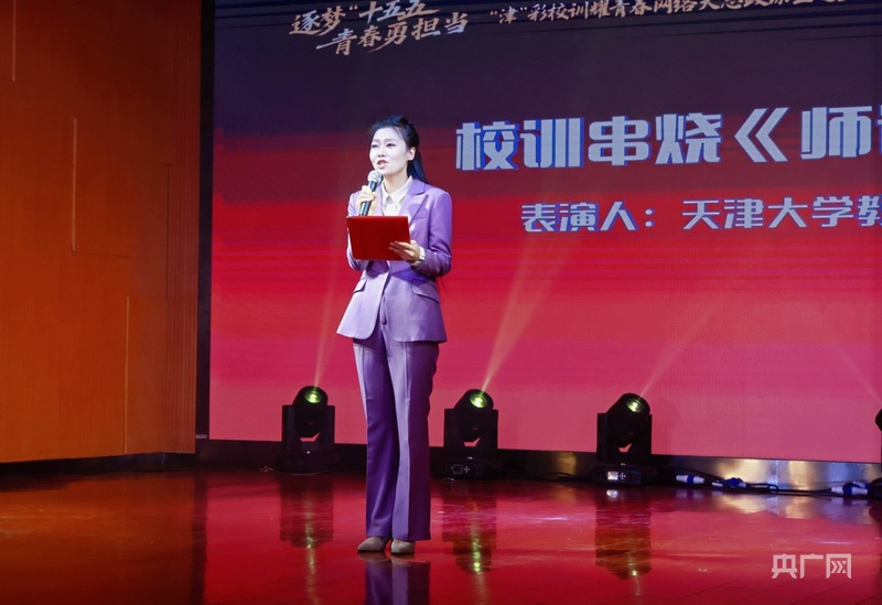 随后,三位获奖教师依次登台:天津科技大学教师李婷申,分享“尚德尚学尚行 爱国爱校爱人”的育人理念;天津大学教师李瑞婷,讲述130年“实事求是”如何成为天大人服务深蓝的基因;天津城建大学教师杨晓萱生动揭开那些把“重德重能 善学善建”精神带进乡村振兴课堂的生动案例。“师”说新语篇章最后,南开大学学生献唱《老师,你好》,向所有“大先生”致敬。