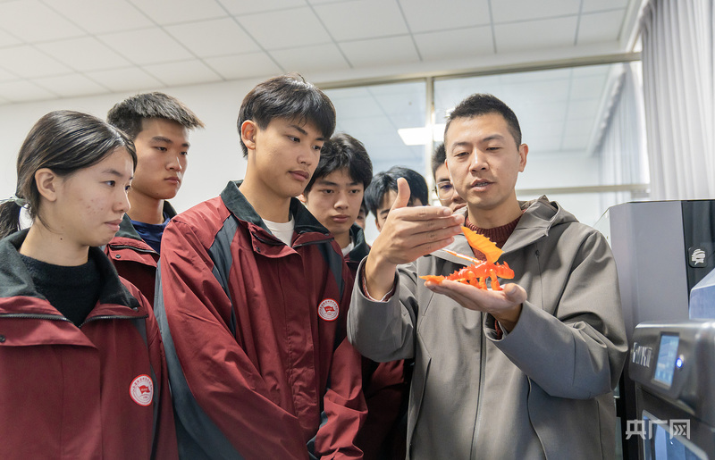 学生们在老师的指导下进行3D打印实训