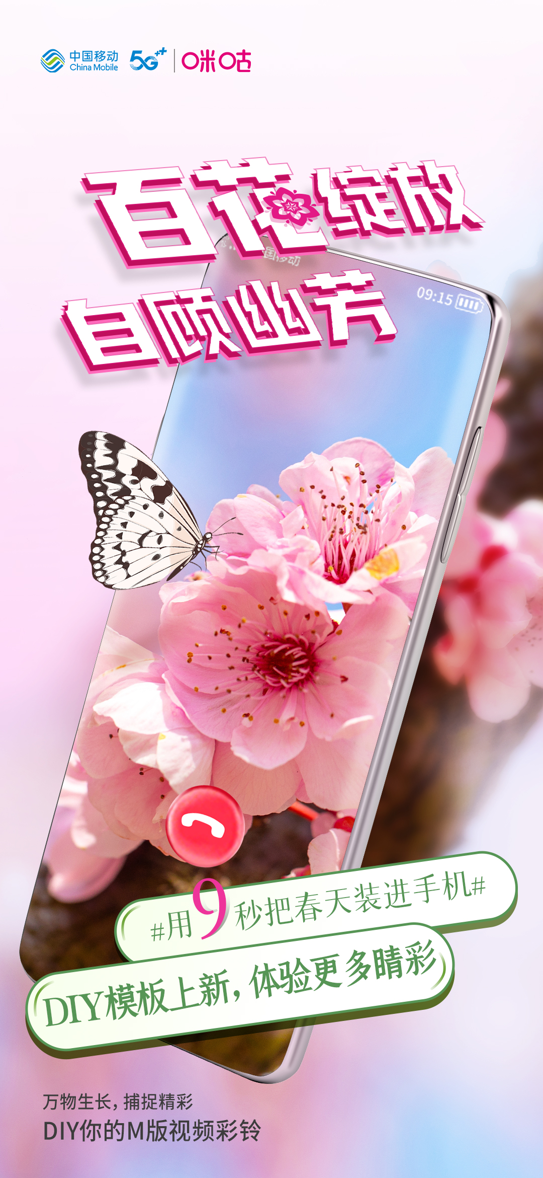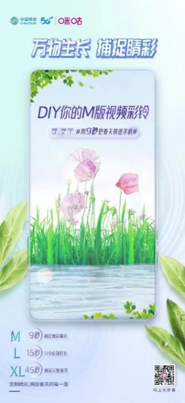 扫描下方二维码进入咪咕音乐视频彩铃专区,DIY自己的视频彩铃,把春天放在手机里随身携带吧~