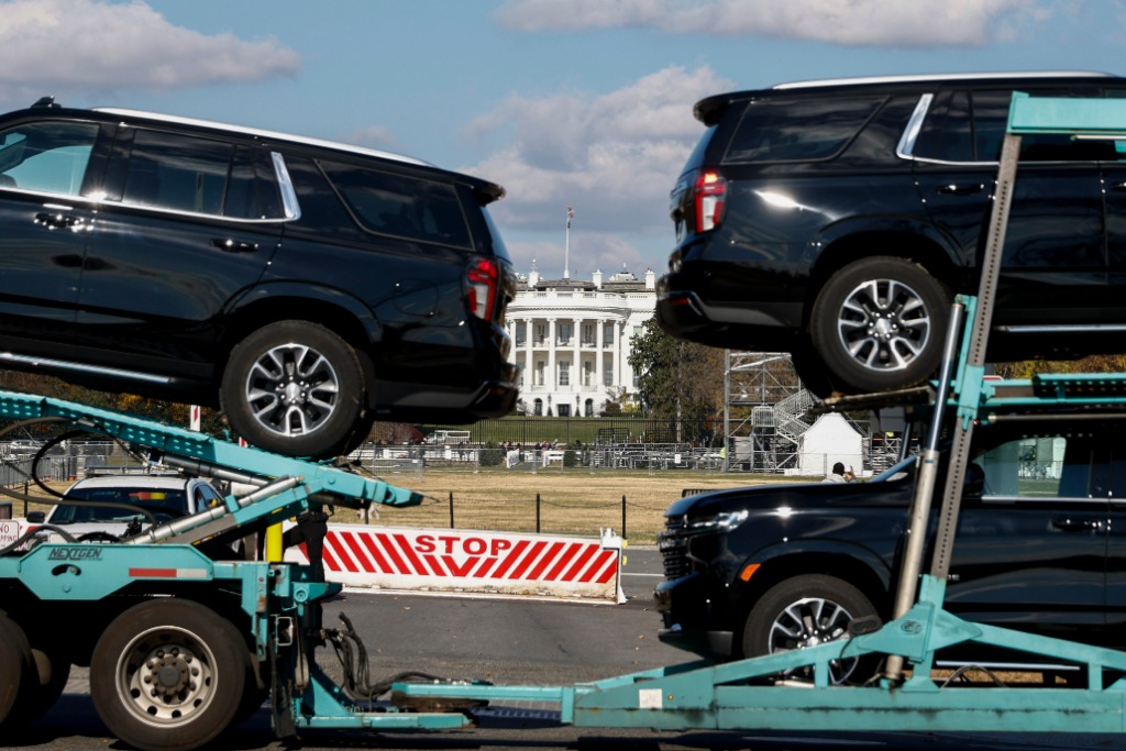 2021年11月23日,在美国首都华盛顿,一辆货车从白宫附近驶过。新华社发(沈霆摄)
