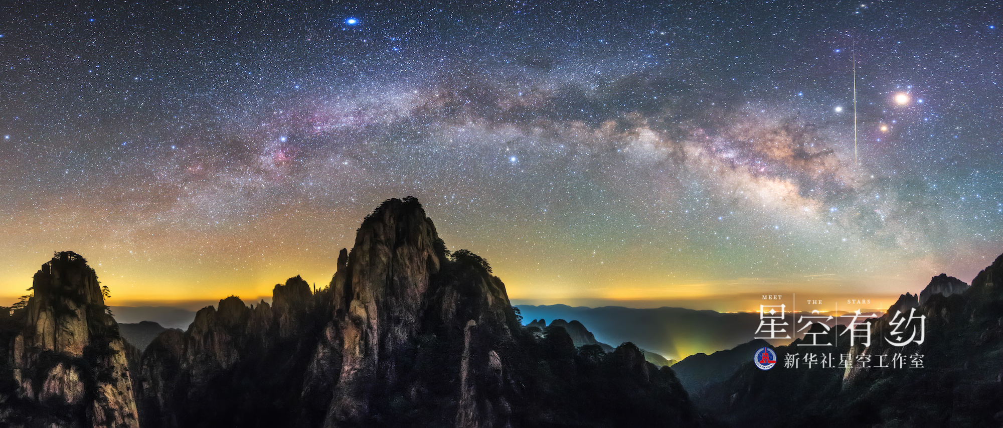 这是重庆市天文爱好者戴建峰2016年5月12日在安徽黄山拍摄的“银河拱桥”。(本人供图)