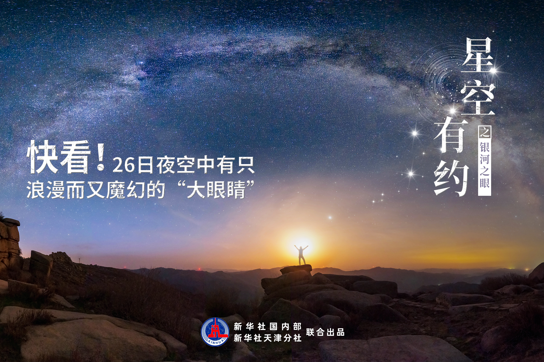 “银河拱桥”常见,“银河之眼”则不常见。天文科普专家介绍,4月26日凌晨,观测“银河之眼”迎来一次良机,届时,月亮会从“银河拱桥”正下方升起,二者组成一只夜空中的“大眼睛”,浪漫而又魔幻。