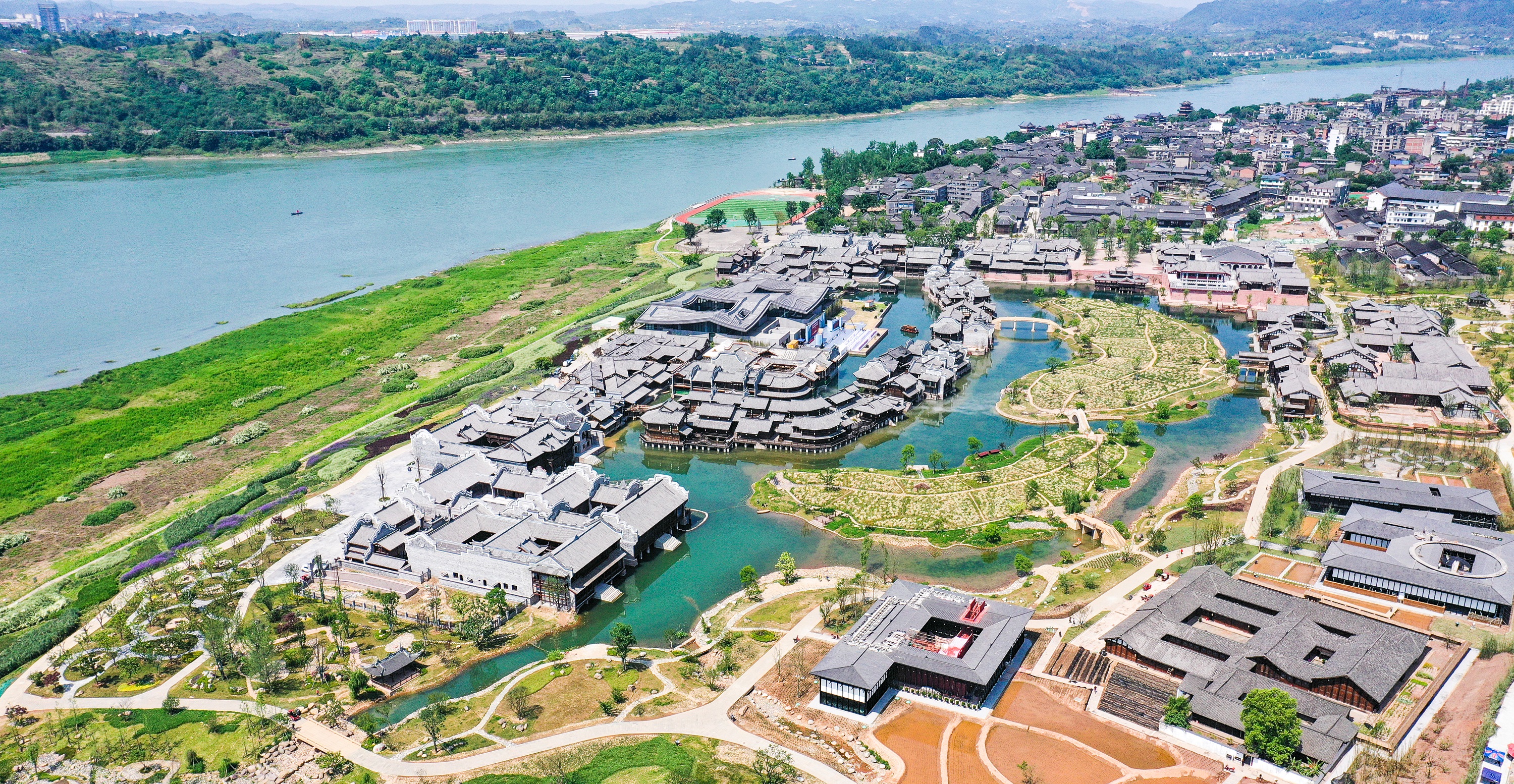 图为无人机拍摄的李庄文化抗战博物馆所在的李庄镇。 新华社发