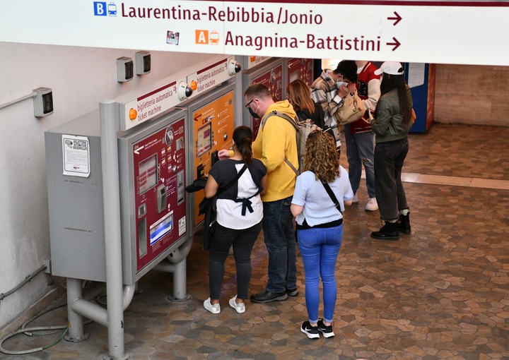 5月1日,人们在意大利罗马一处地铁站购票。新华社记者金马梦妮摄