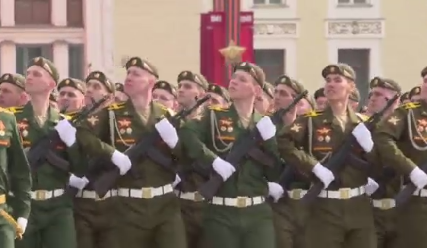 当地时间5月9日,俄罗斯第二大城市圣彼得堡在艾尔米塔什冬宫广场举行了盛大的阅兵式,纪念卫国战争胜利77周年。来自俄罗斯西北联邦区的4000名军人,消防人员和军校学生列队通过冬宫广场,接受检阅。